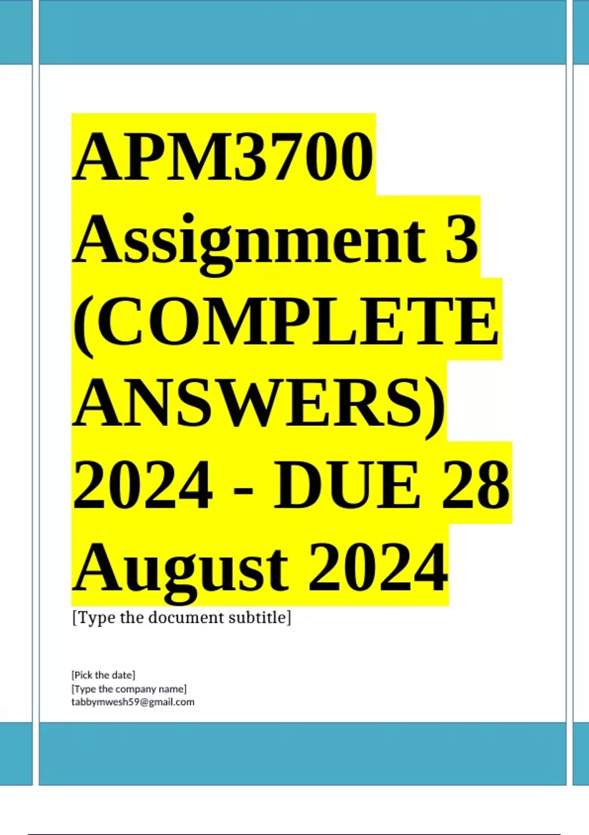 APM3700 Assignment 3 (COMPLETE ANSWERS) 2024 - DUE 28 August 2024 ; 100% TRUSTED Complete, trusted solutions and explanationsEnsure your success with us..