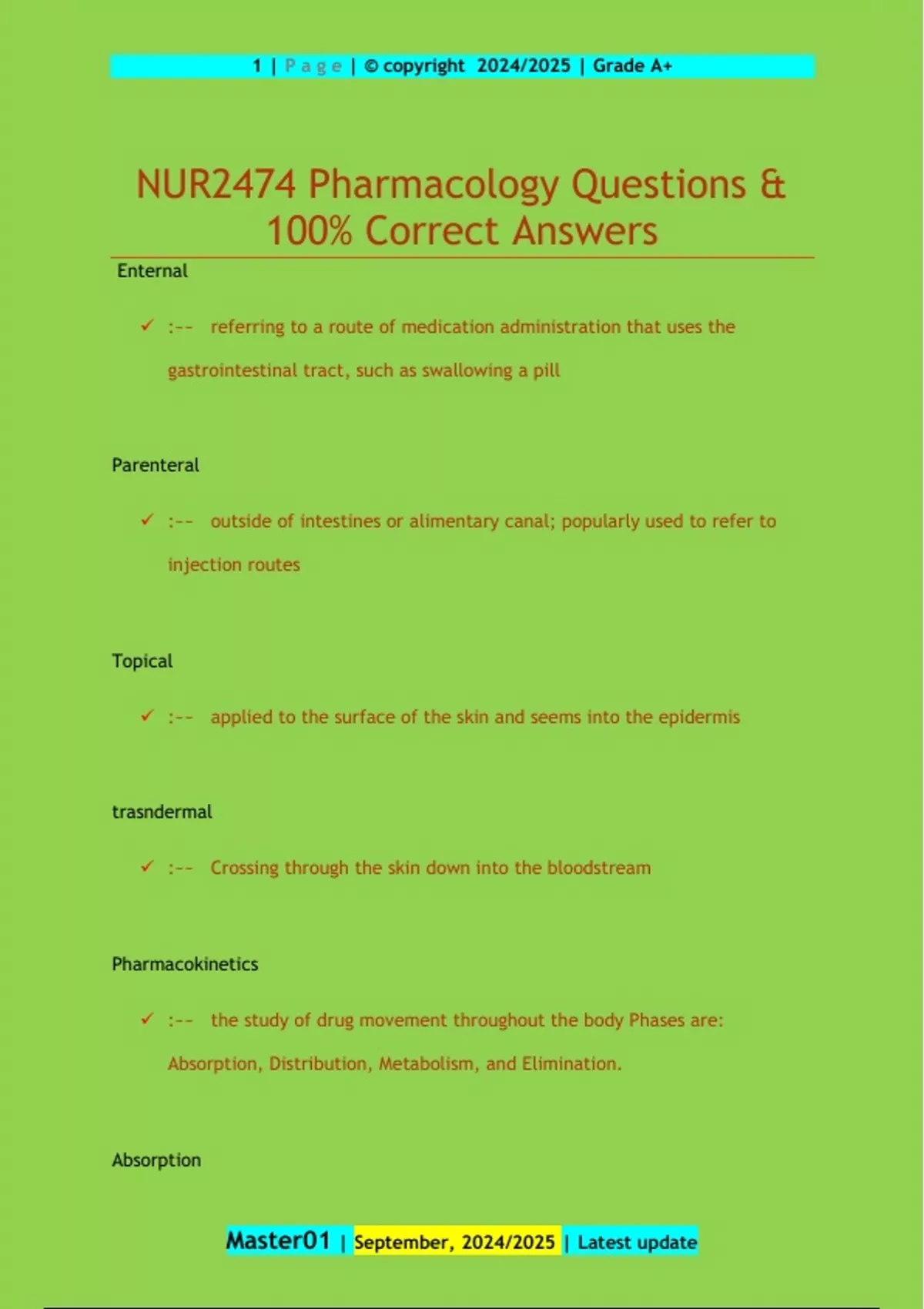 NUR2474 Pharmacology Questions & 100% Correct Answers