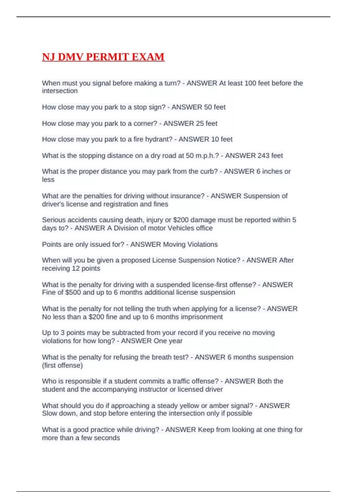 Exam of 11 pages for the course NJ DMV PERMIT at NJ DMV PERMIT (NJ DMV PERMIT EXAM)