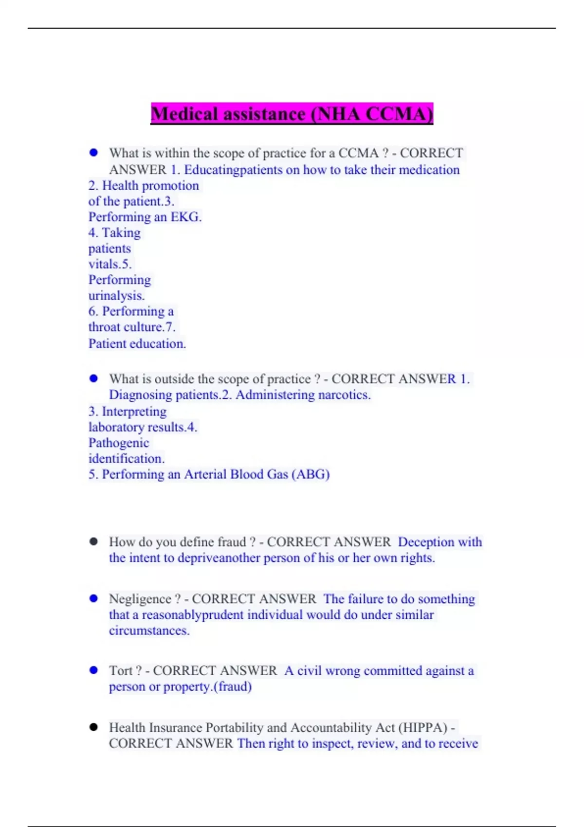 What is within the scope of practice for a CCMA ? - CORRECT