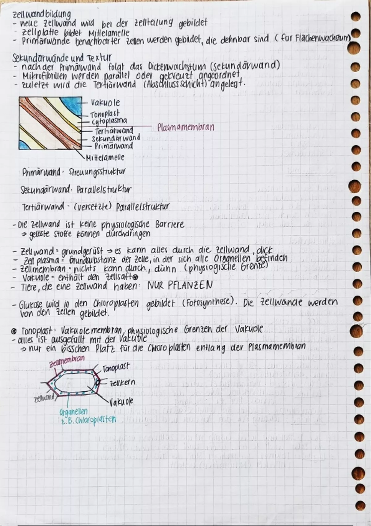 Detaillierte Notizen zur Zellwand, Bestandteile einer Zelle (Chloroplasten - Plastiden, Zellwandstruktur, Mitochondrien), Protokoll zu einem Experiment über Chloroplasten und eine detaillierte Erklärung zur Endosymbiontentheorie.
