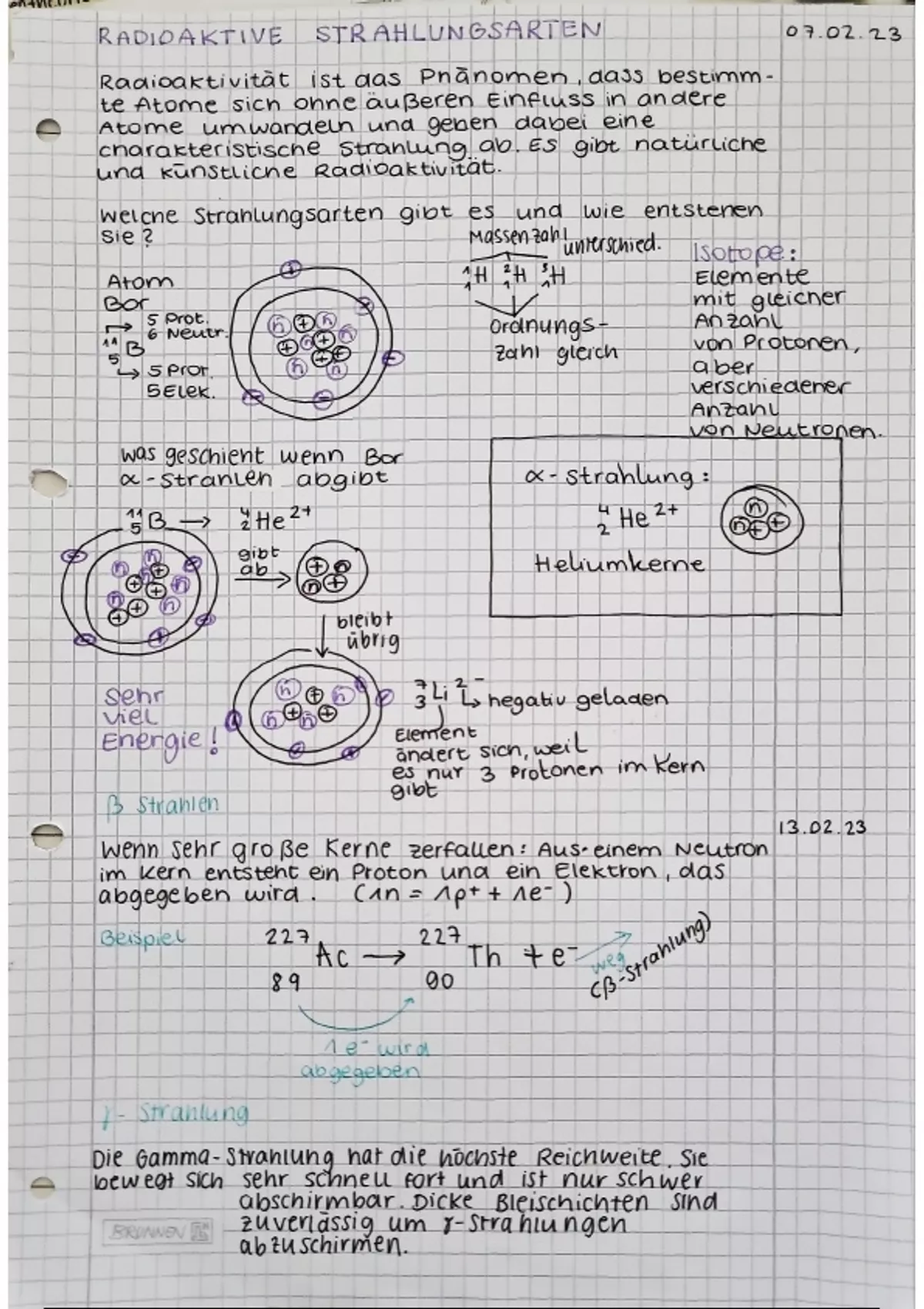 Zusammenfassung Verschiede Strahlungsarten - Radioaktivität