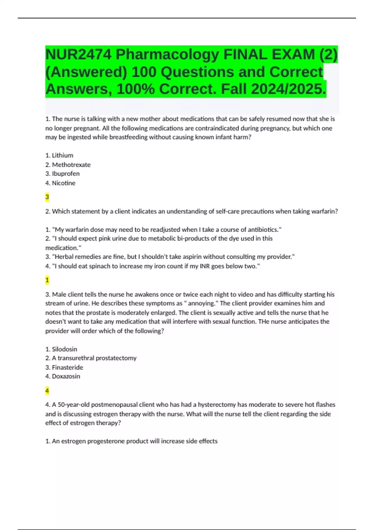 (Answered) 100 Questions and Correct