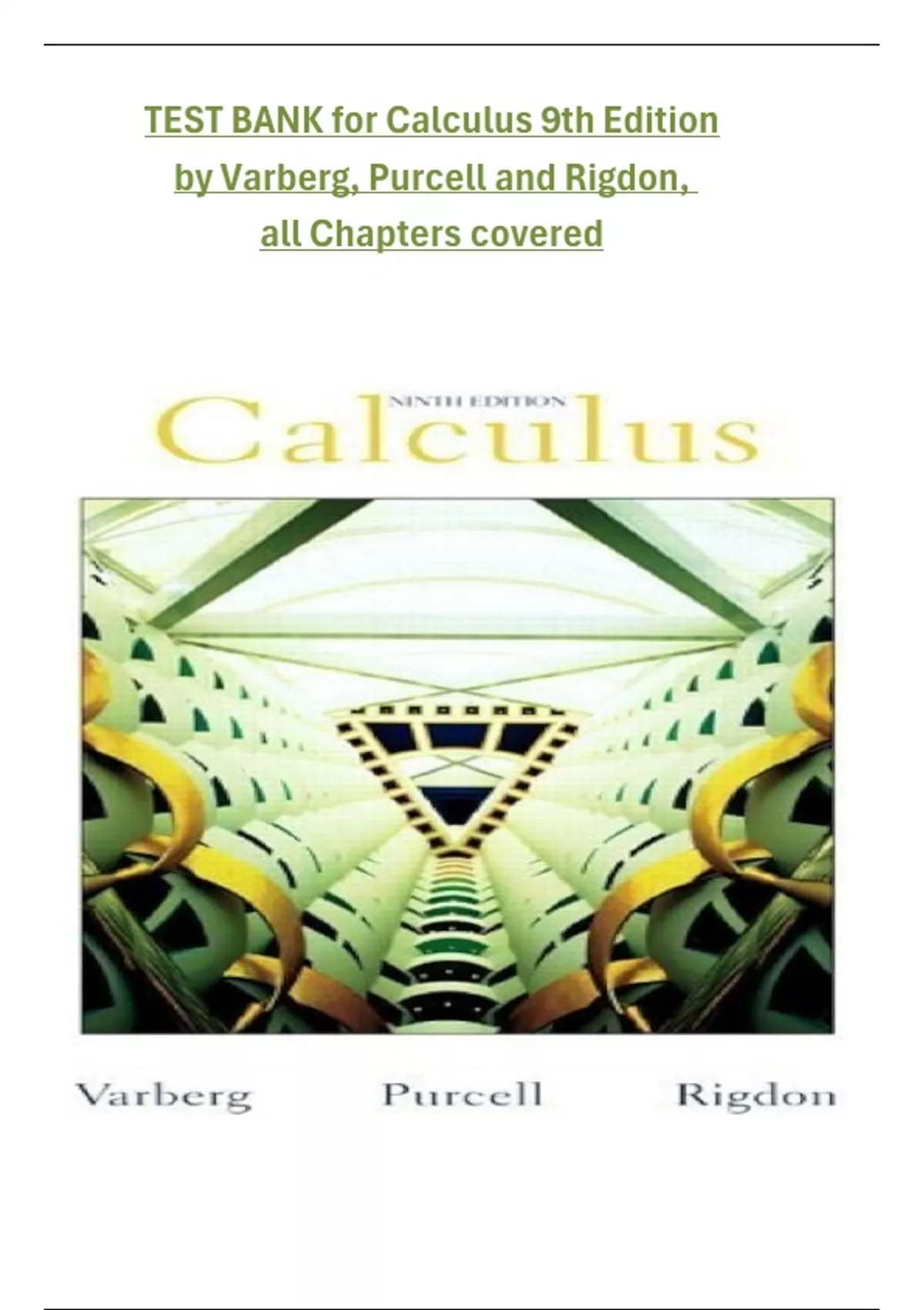 TEST BANK for Calculus 9th Edition by Varberg, Purcell and Rigdon, all Chapters covered ISBN: 9780131429246