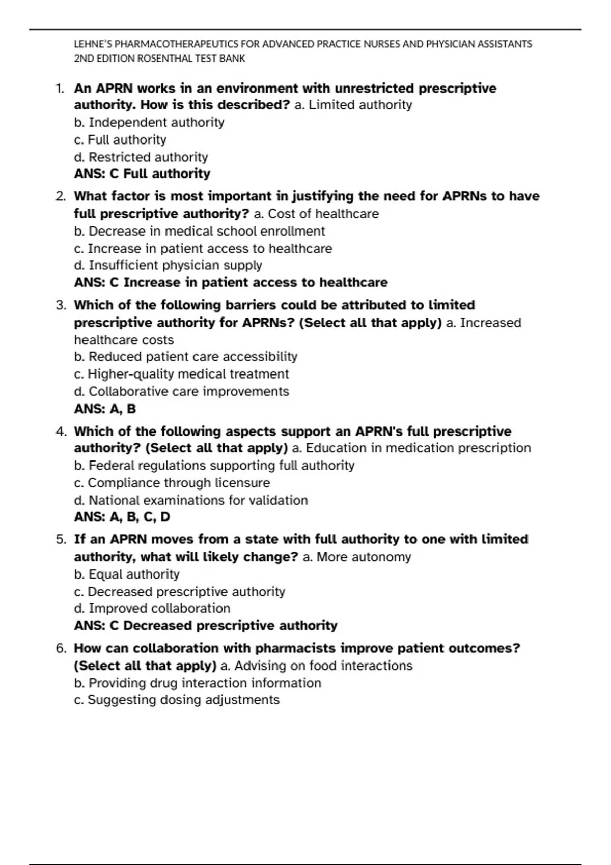 prescriptive authority for APRNs? (Select all that apply) a. Increased