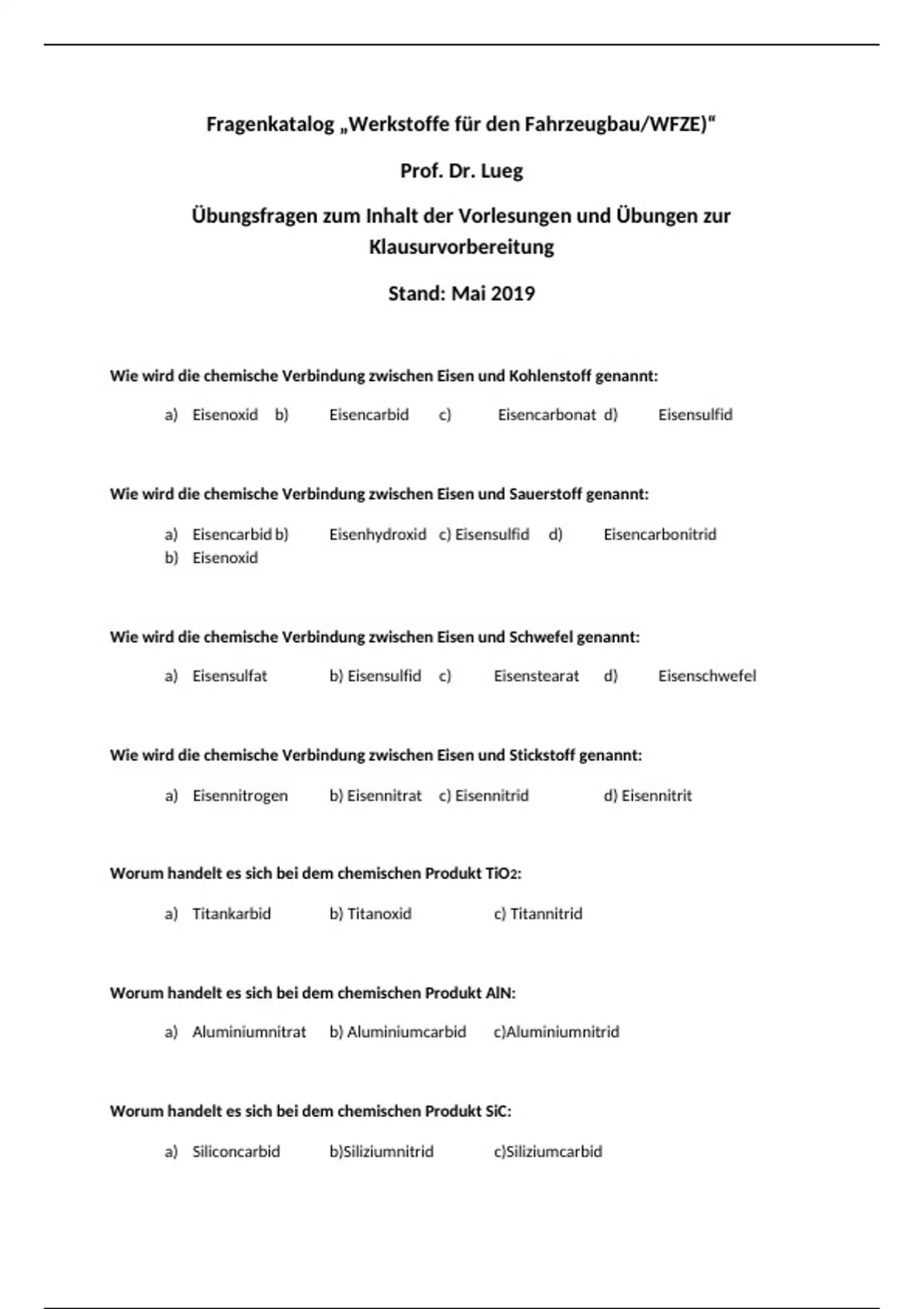 Fragenkatalog „Werkstoffe für den Fahrzeugbau/WFZE)“