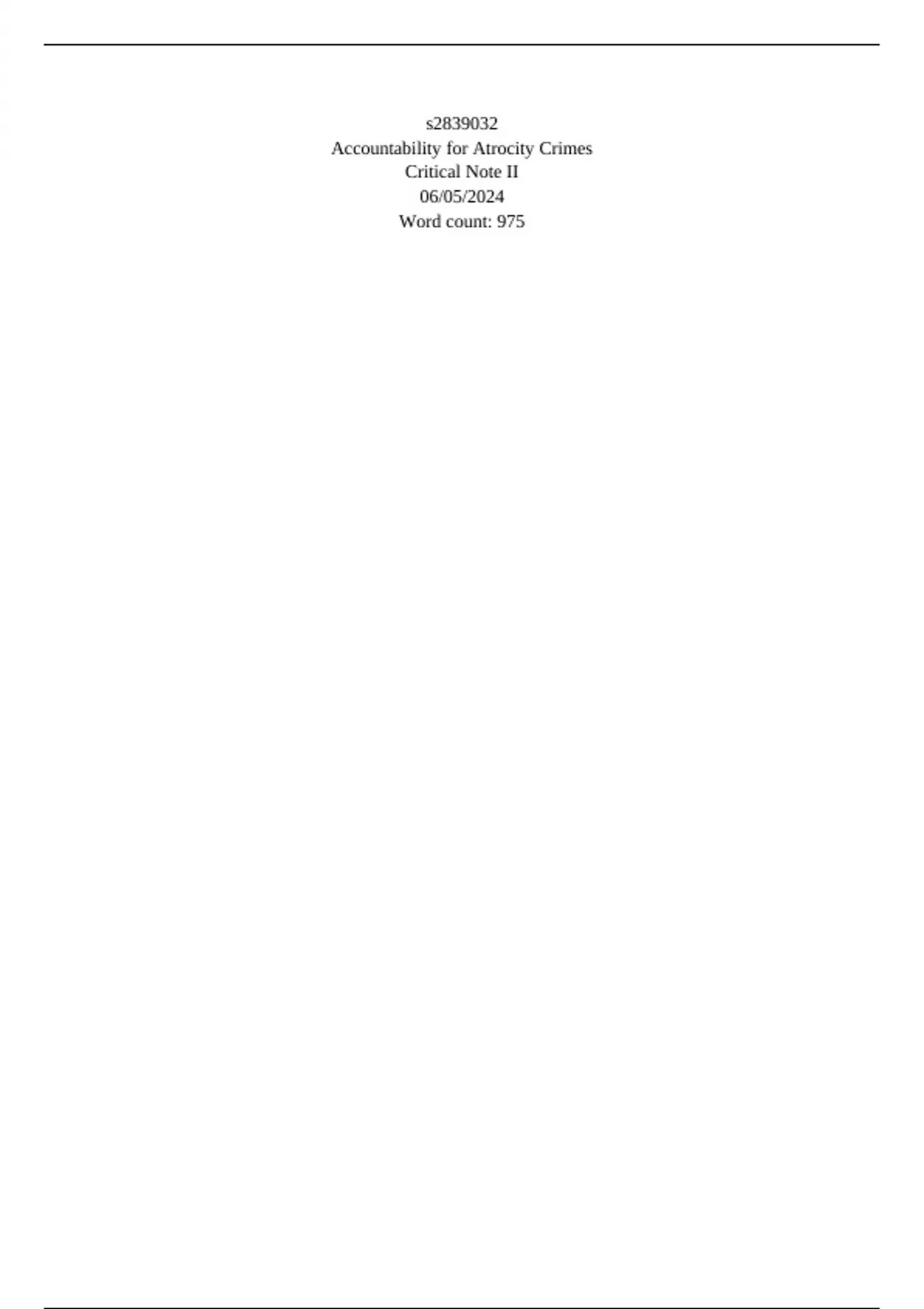 Accountability for Atrocity Crimes: Critical Note Assignment