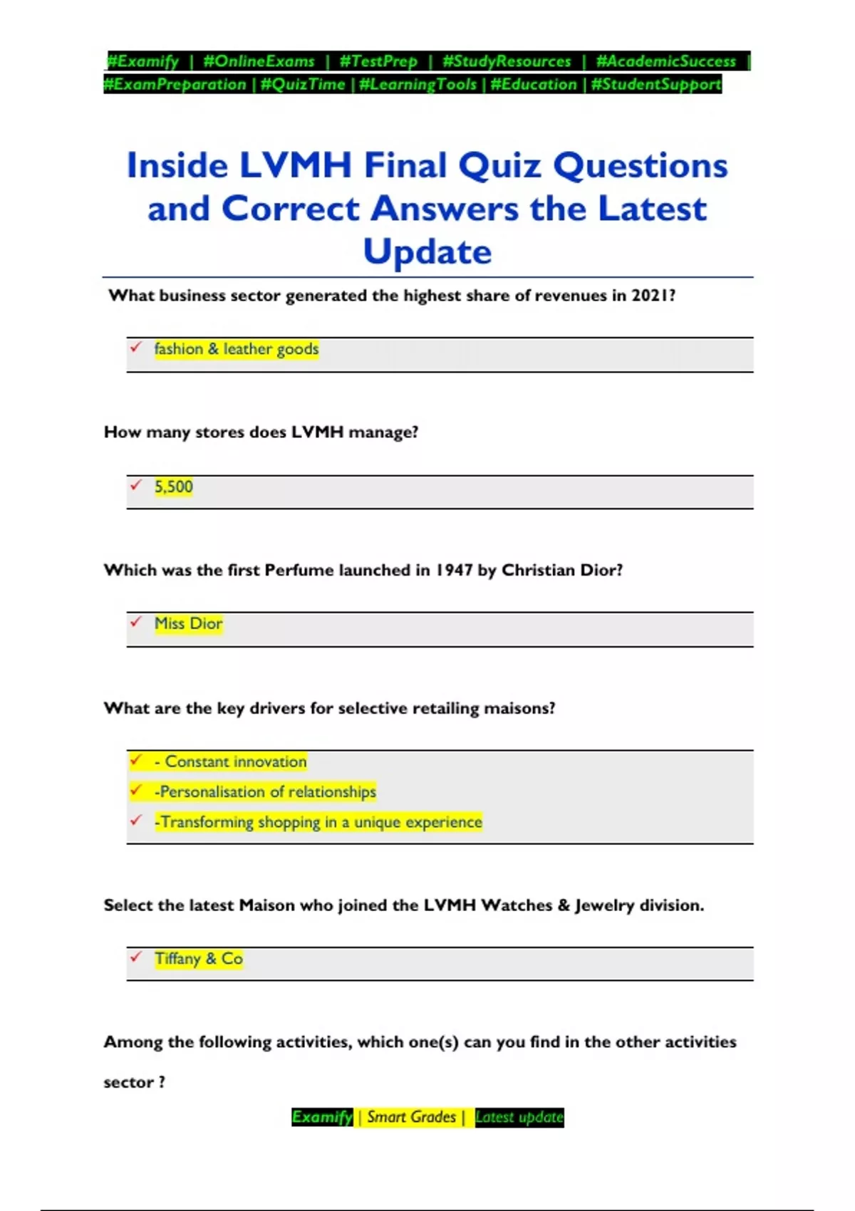 Inside LVMH Final Quiz Questions and Correct Answers the Latest Update