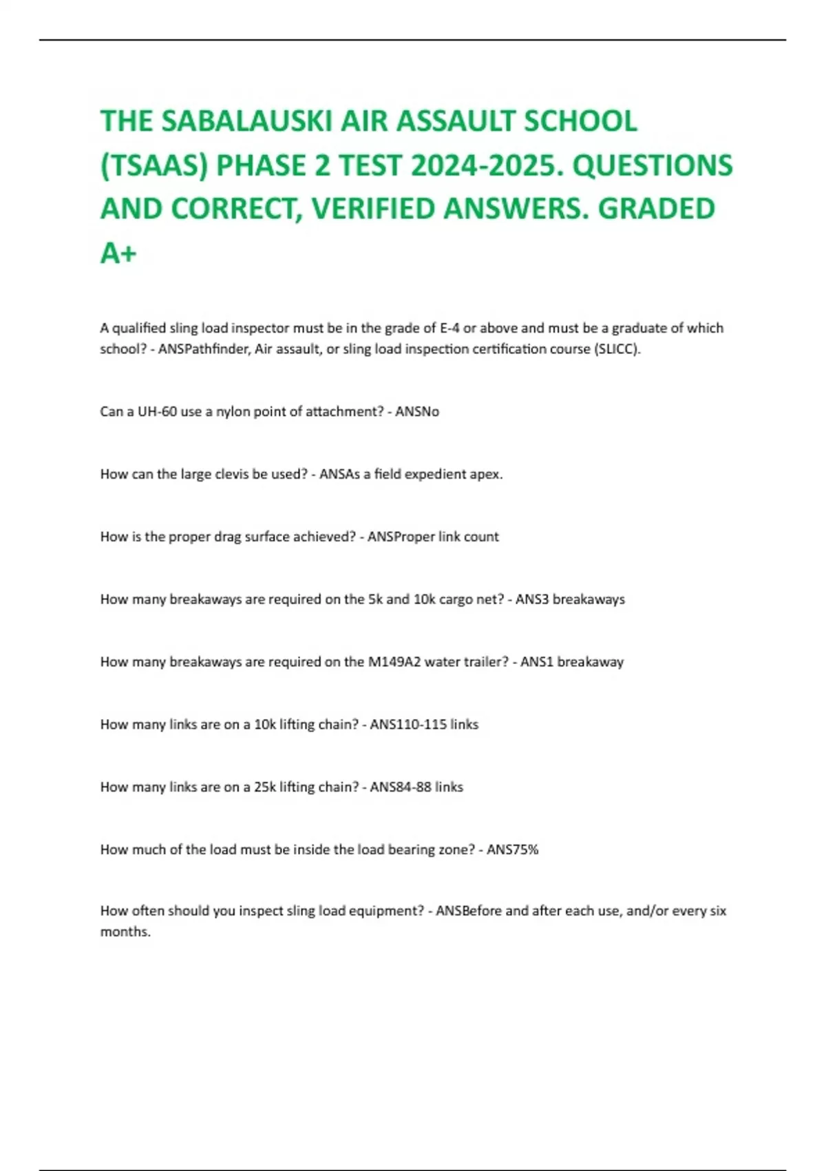 school? - ANSPathfinder, Air assault, or sling load inspection certification course (SLICC).