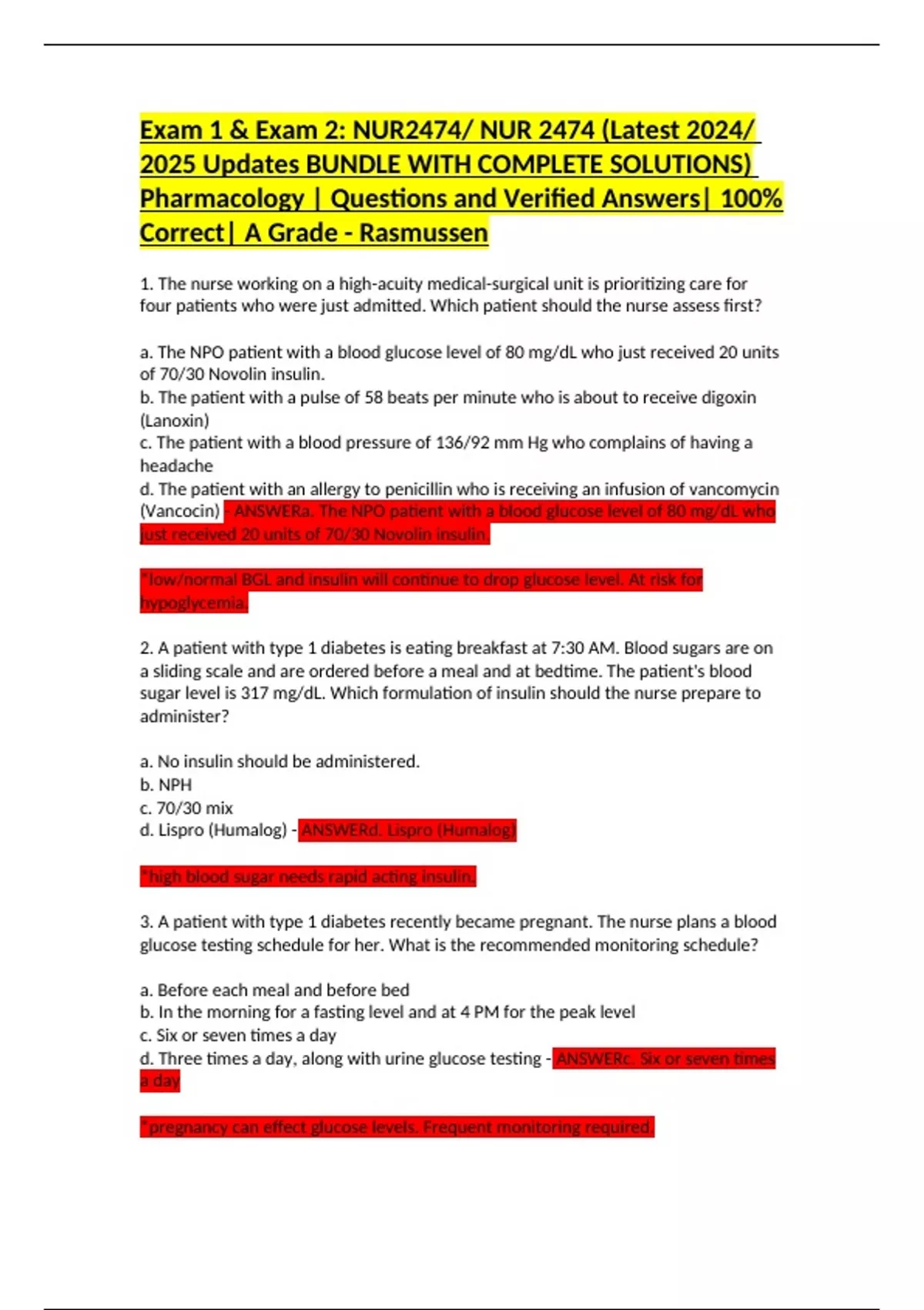 Exam 1 & Exam 2: NUR2474/ NUR 2474 (Latest 2024/