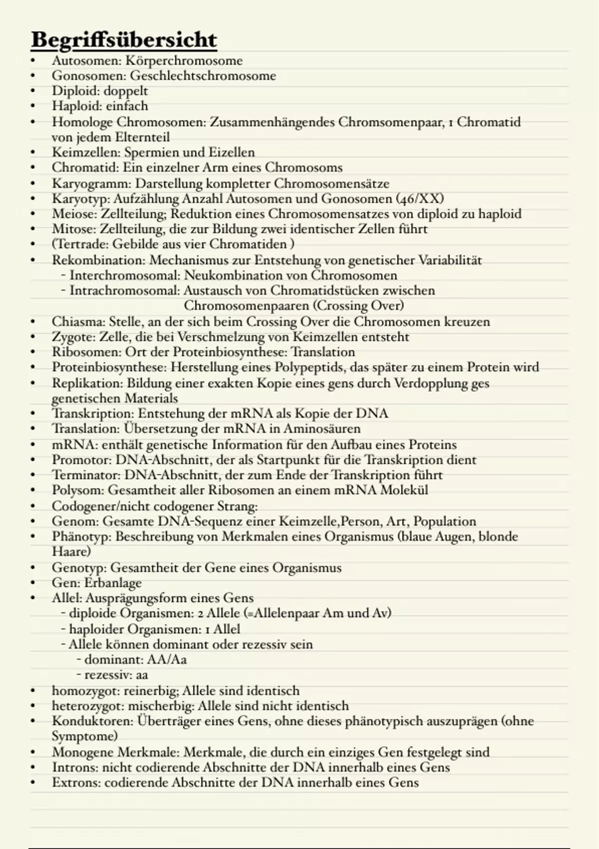 Zusammenfassung Genetik Lernzettel