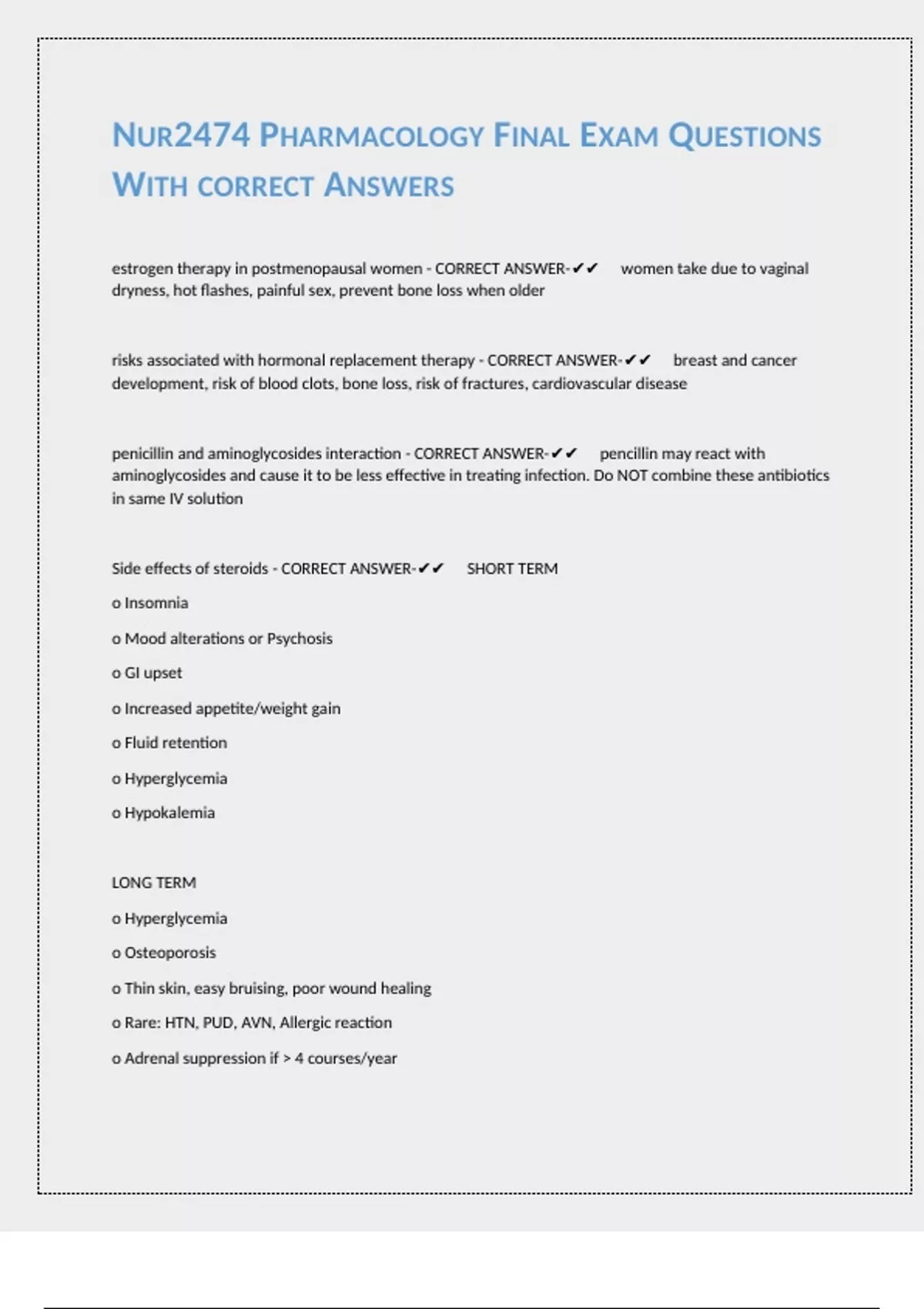 NUR2474 PHARMACOLOGY FINAL EXAM QUESTIONS WITH CORRECT ANSWERS