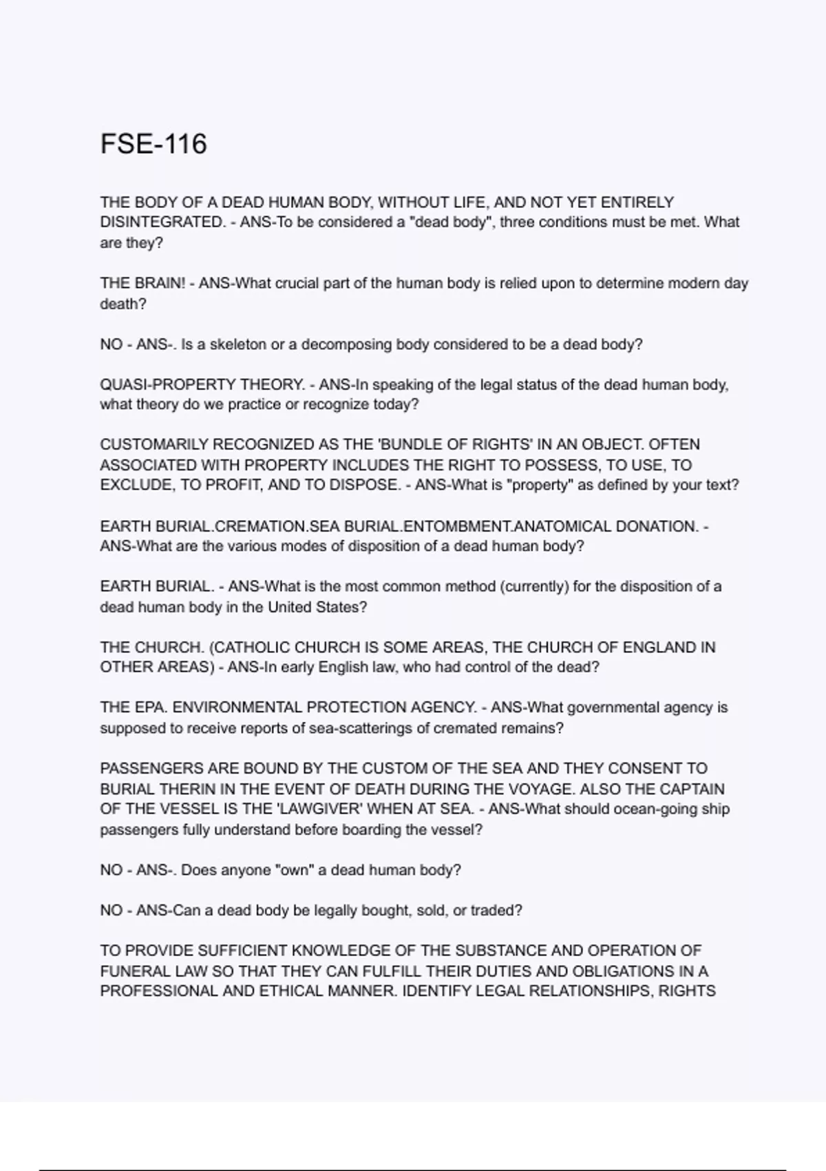 QUASI-PROPERTY THEORY. - ANS-In speaking of the legal status of the dead human body,