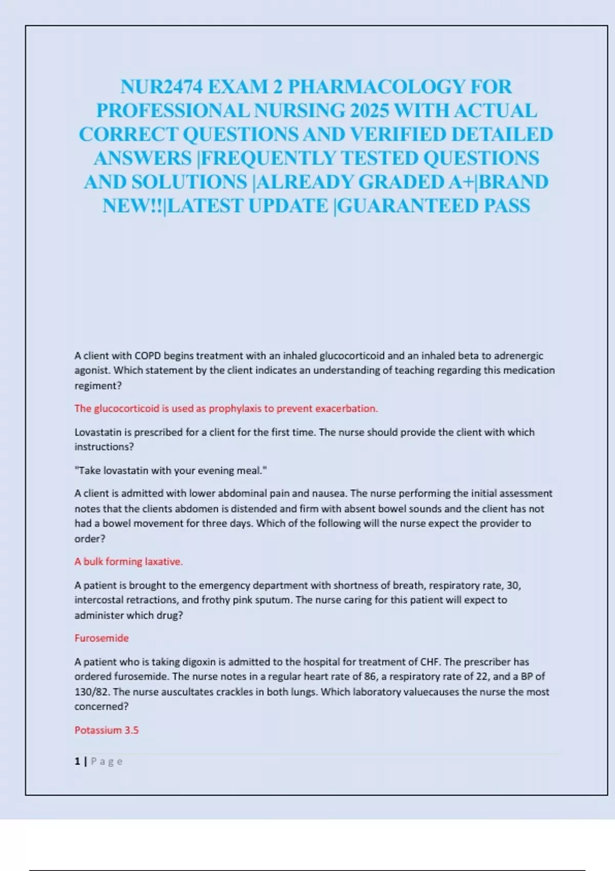 NUR2474 EXAM 2 PHARMACOLOGY FOR PROFESSIONAL NURSING 2025 WITH ACTUAL CORRECT QUESTIONS AND VERIFIED DETAILED ANSWERS |FREQUENTLY TESTED QUESTIONS AND SOLUTIONS |ALREADY GRADED A+|BRAND NEW!!|LATEST UPDATE |GUARANTEED PASS