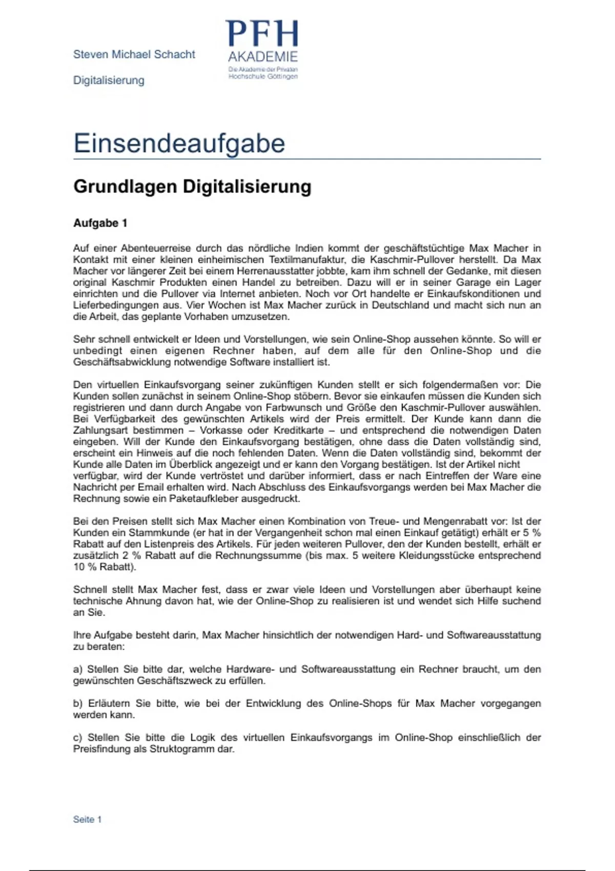 Wirtschaftsinformatik Grundlagen der Digitalisierung bestandene Einsendearbeit