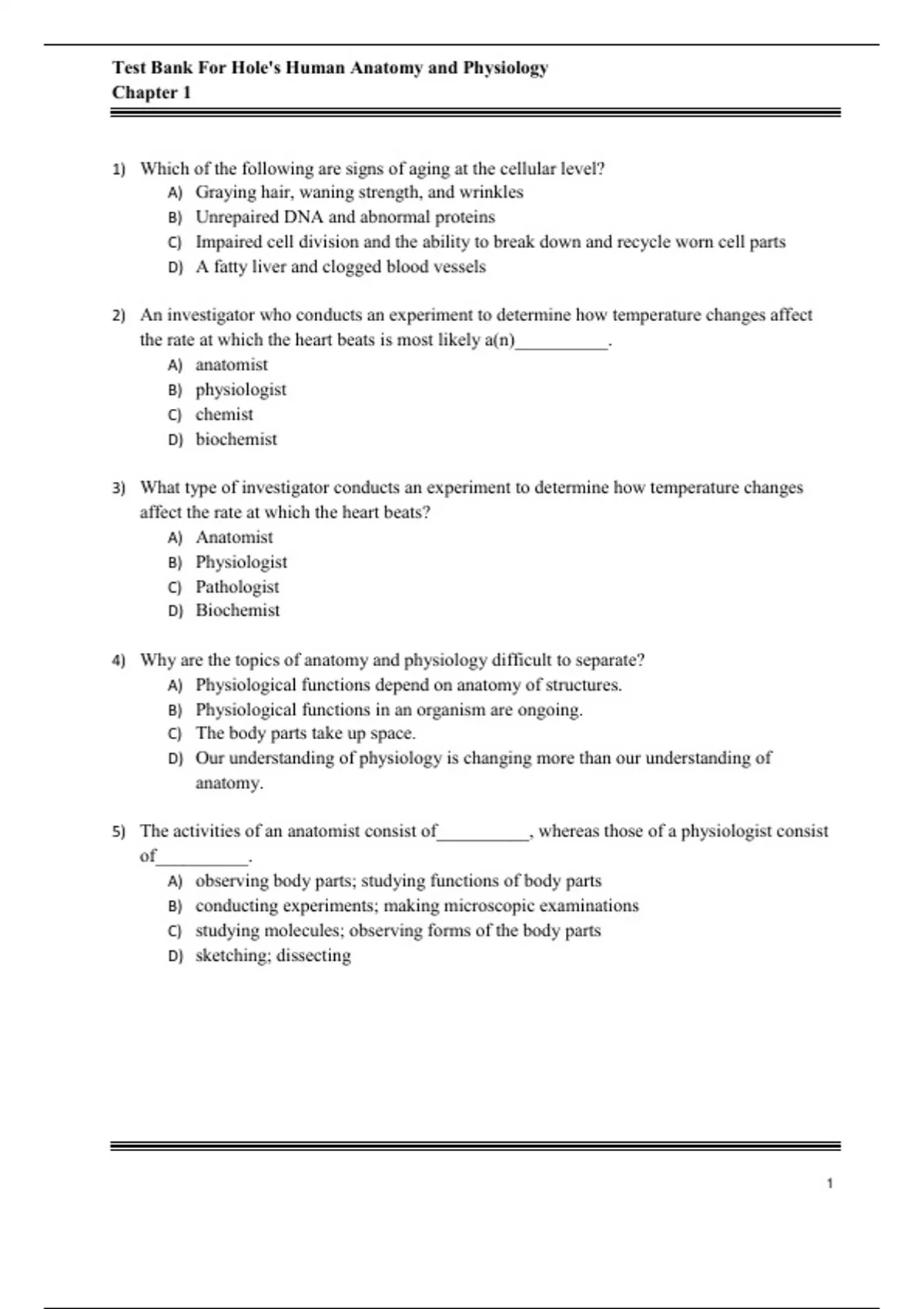 5) The activities of an anatomist consist of__________, whereas those of a physiologist consist