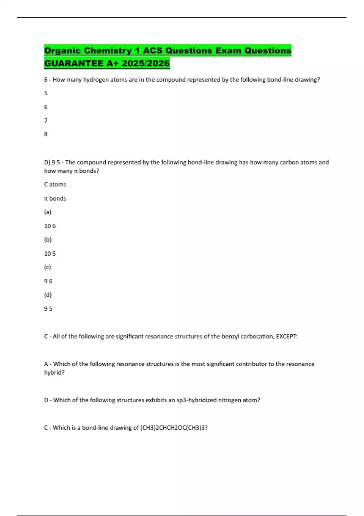 D) 9 5 - The compound represented by the following bond-line drawing has how many carbon atoms and