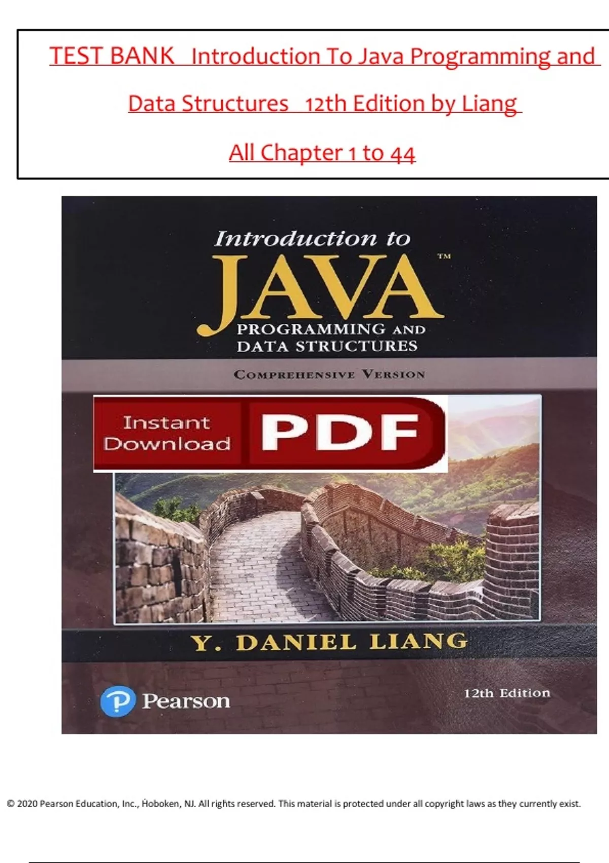 Test Bank - Introduction To Java Programming and Data Structures, 12th Edition by Liang, All 1-44 Chapters Covered ,Latest Edition