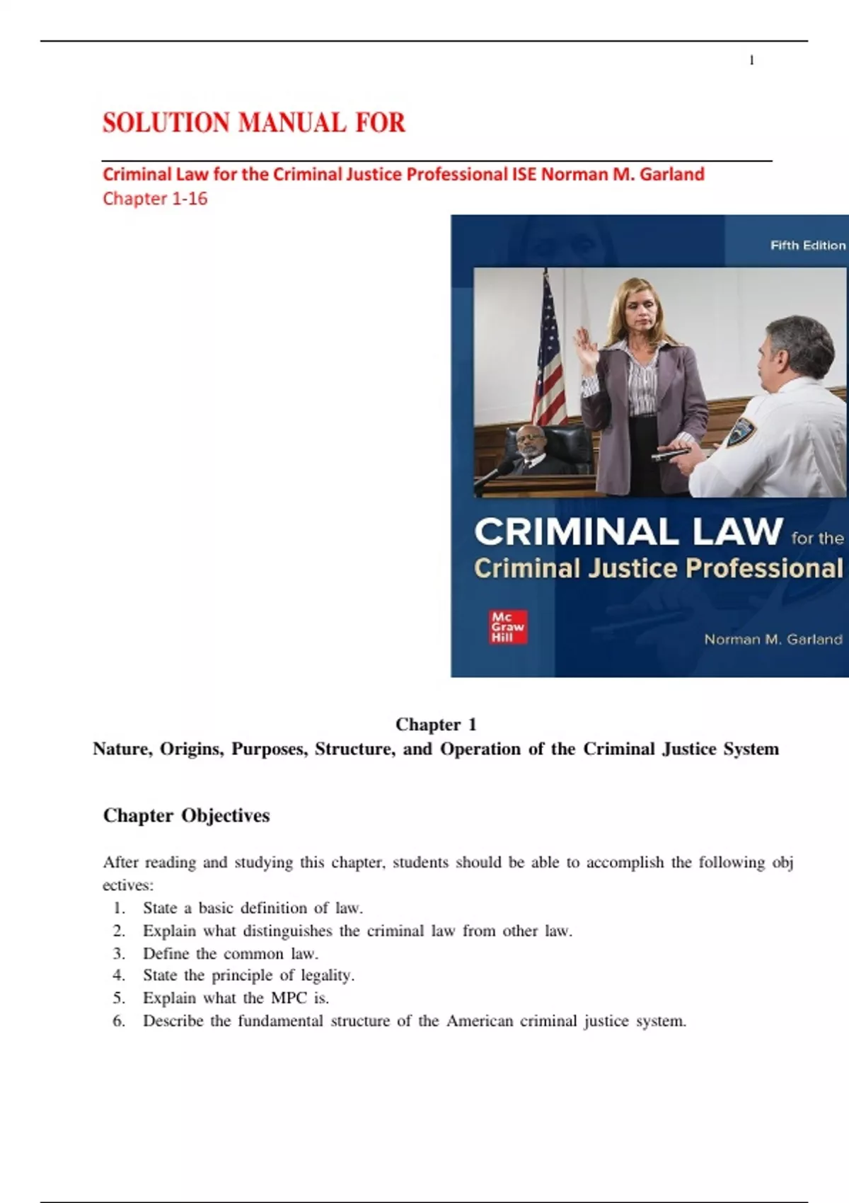 SOLUTION MANUAL FOR Criminal Law for the Criminal Justice Professional ISE Norman M. Garland Chapter 1-16