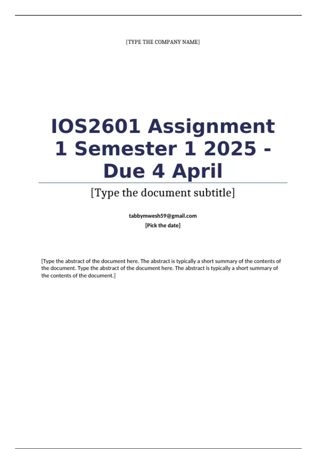 IOS2601 Assignment 1 Semester 1 2025 - Due 4 April