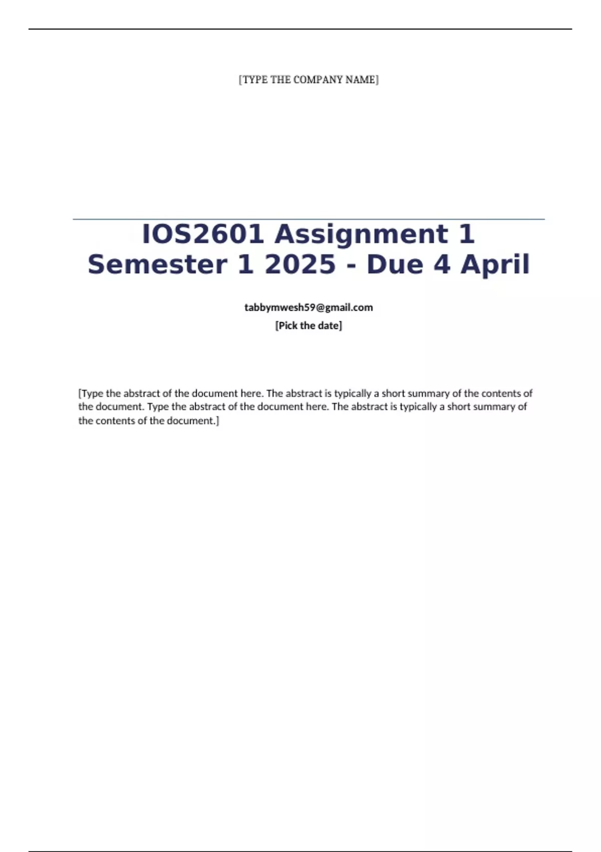 ASSIGNMENT 01 DUE DATE: 04 APRIL 2025 SPECIAL INSTRUCTIONS: