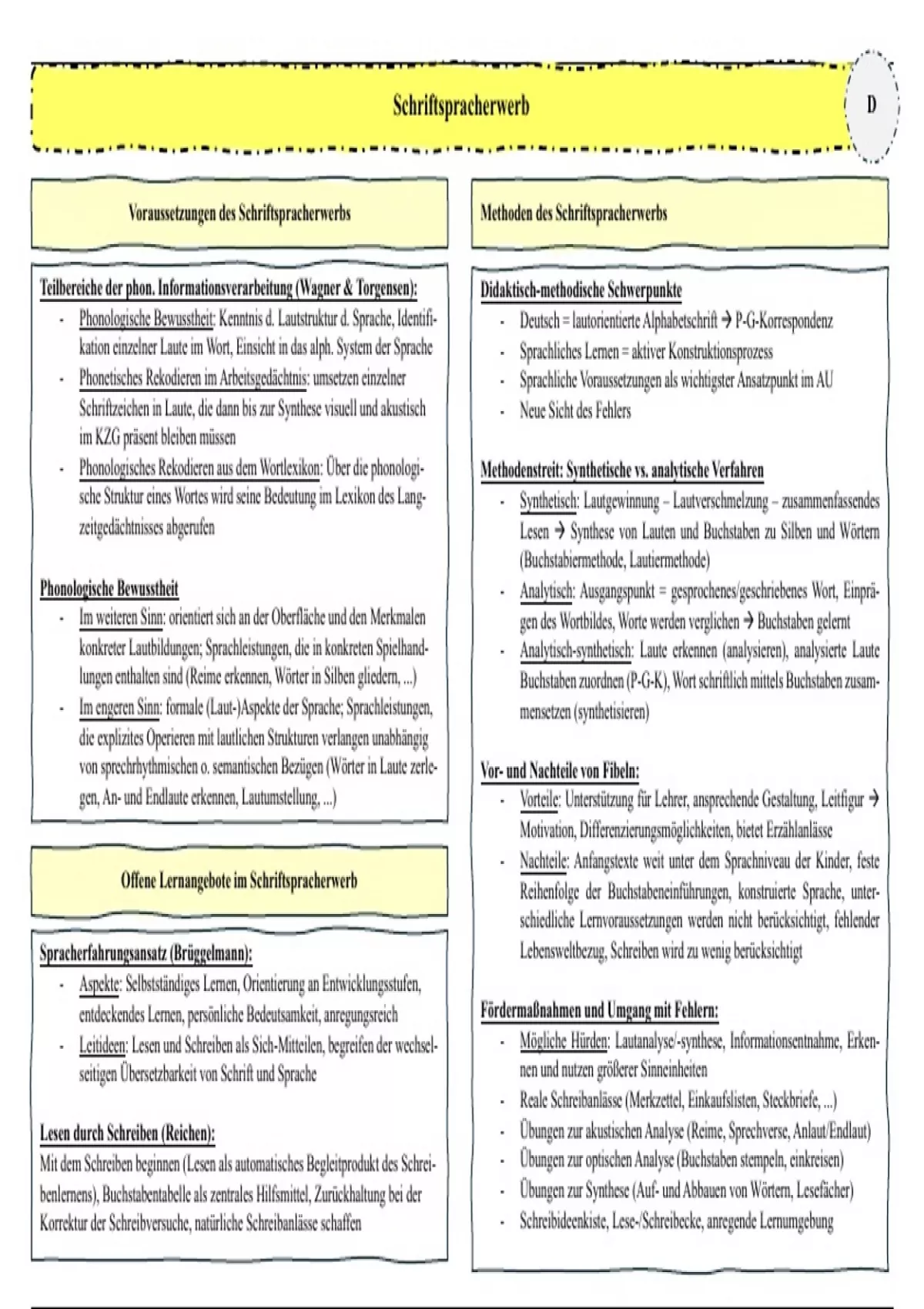 - Phonologische Bewusstheit: Kenntnis d. Lautstruktur d. Sprache, Identifi- - Deutsch = lautorientierte Alphabetschrift → P-G-Korrespondenz