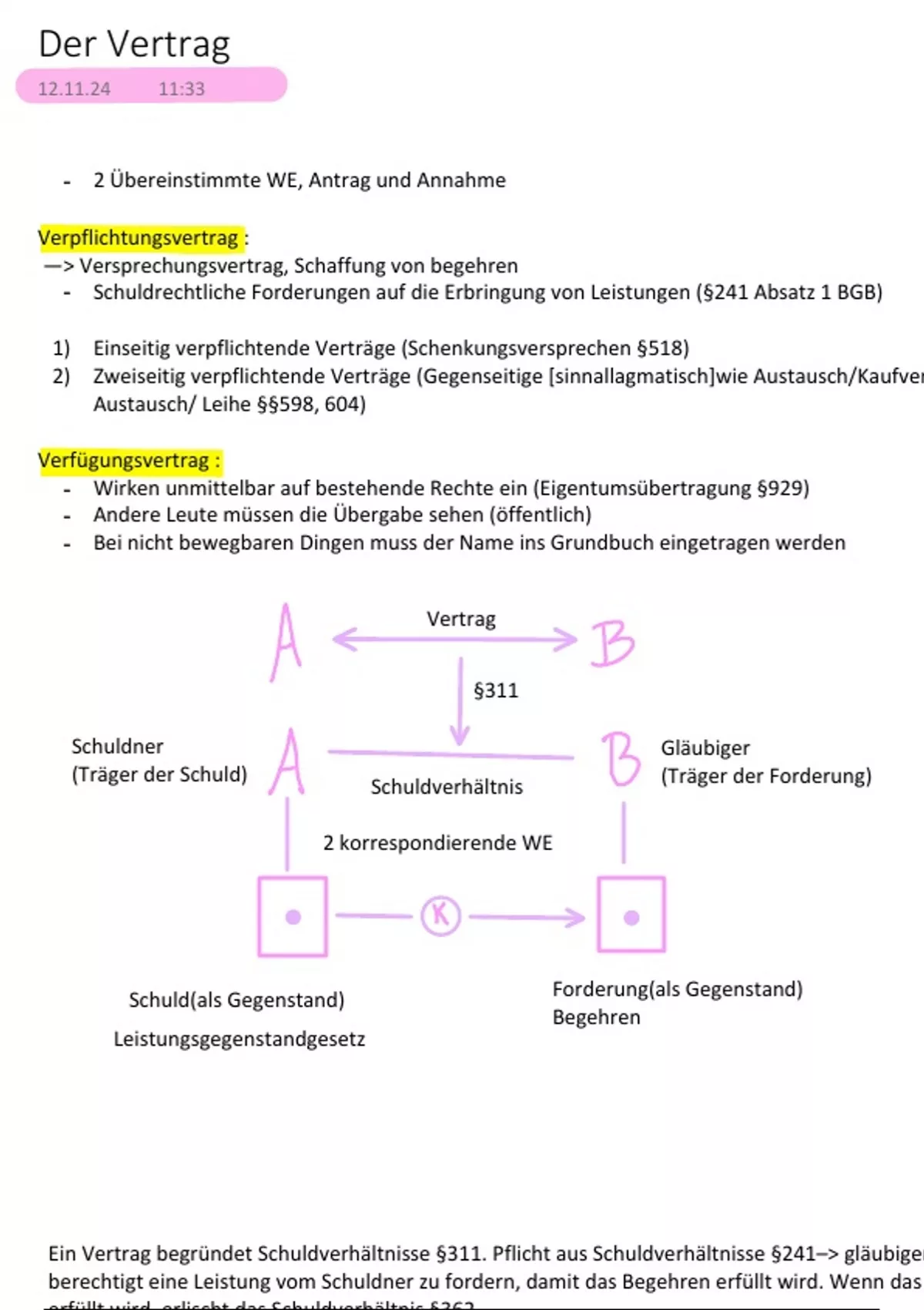 Ein Vertrag begründet Schuldverhältnisse §311. Pflicht aus Schuldverhältnisse §241–> gläubiger