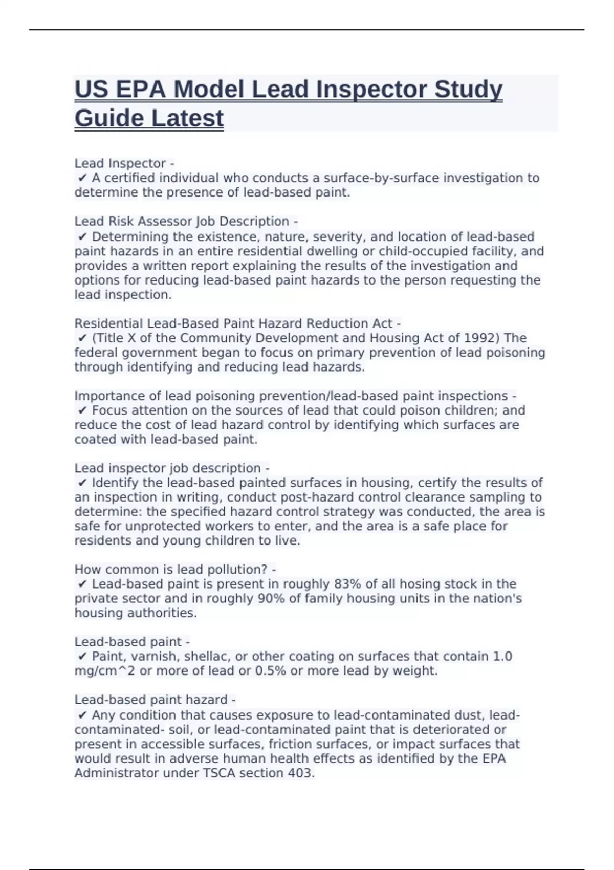 ✔ Lead-based paint is present in roughly 83% of all hosing stock in the