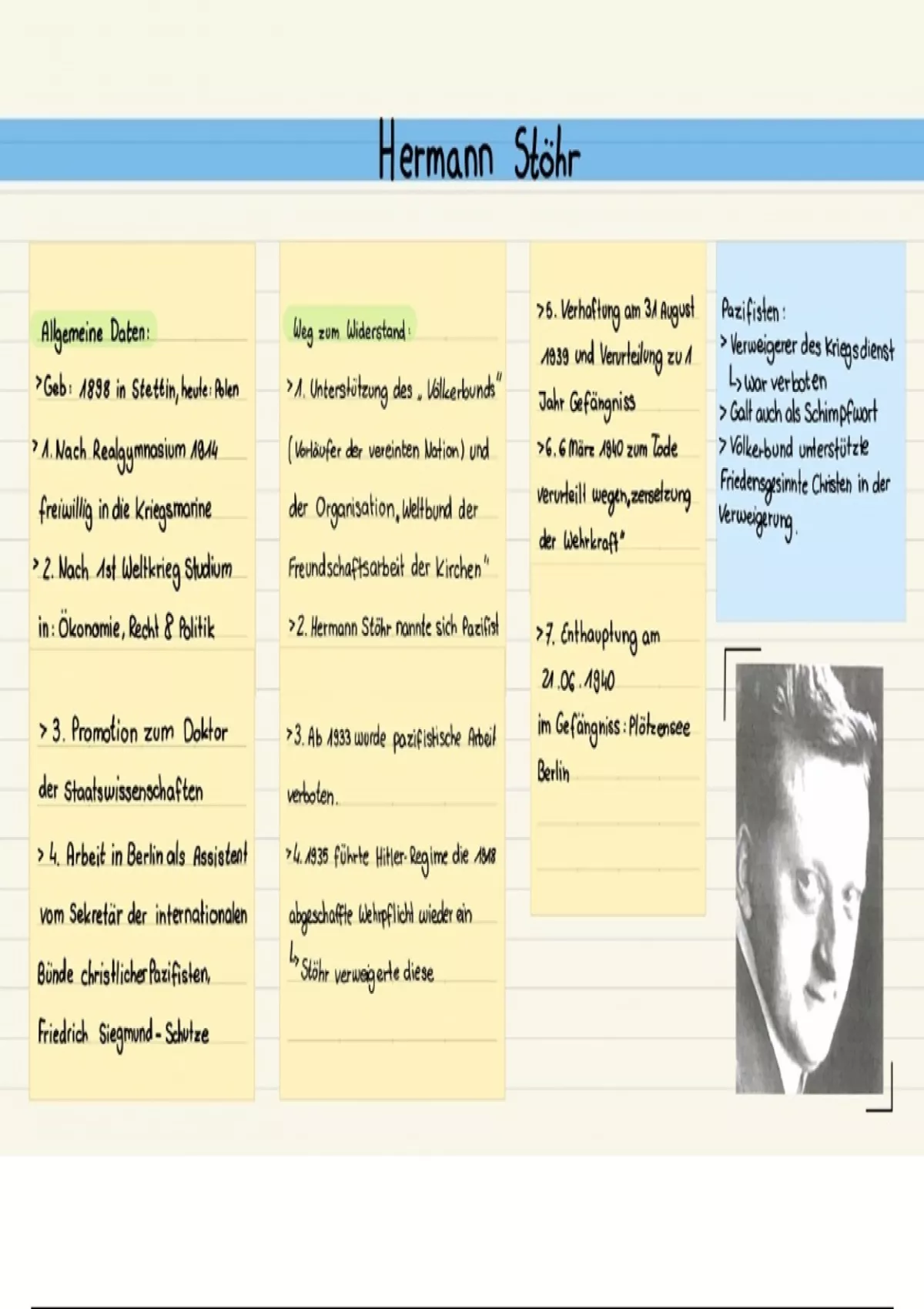 Eine Zusammenfassung des Widerständlers Hermann Stöhr im Nationalsozialismus