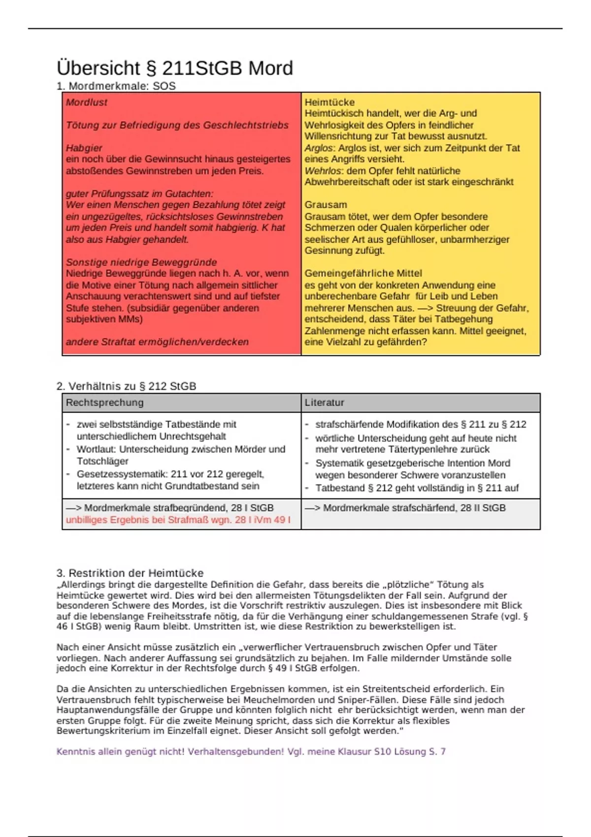 Zusammenfassung Definitionen, Schema und wichtige Meinungsstreits Mord § 211 StGB