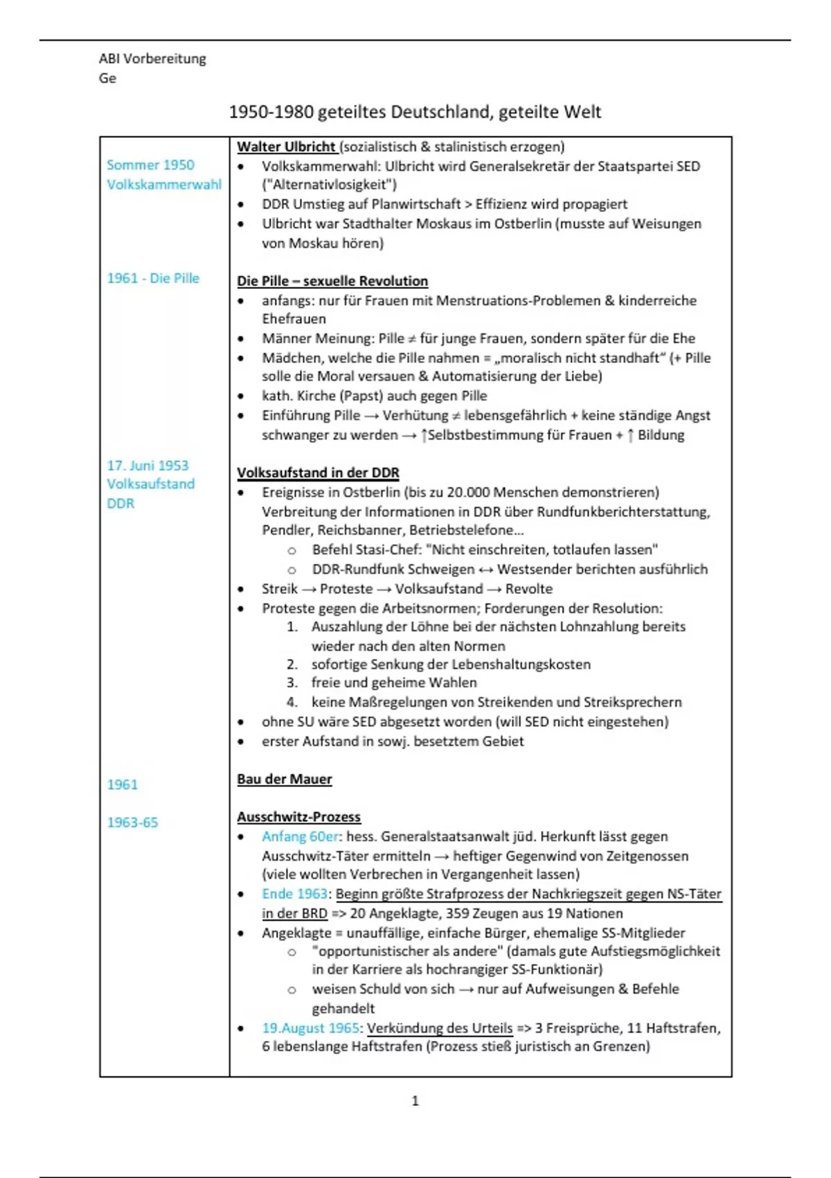1950-1980 geteiltes Deutschland, geteilte Welt