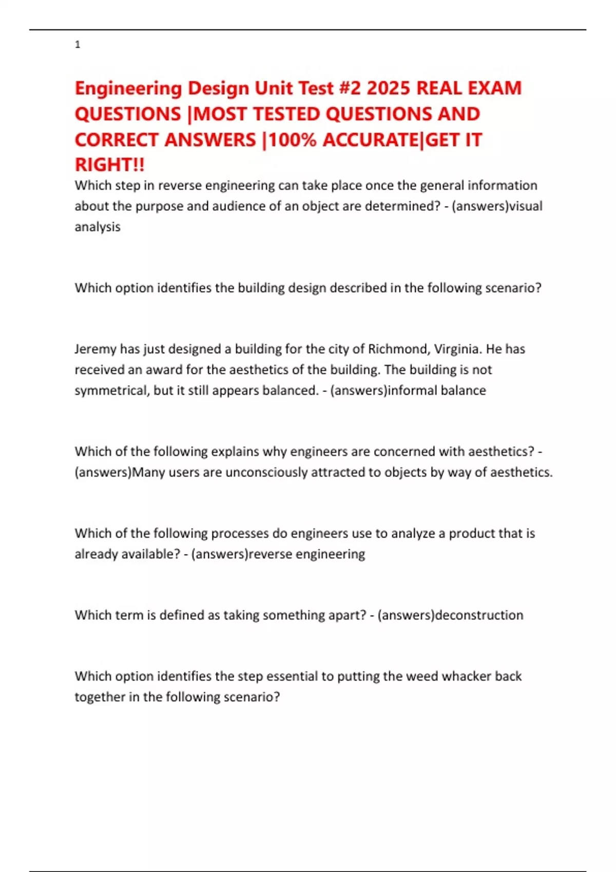 Engineering Design Unit Test #2 2025 REAL EXAM