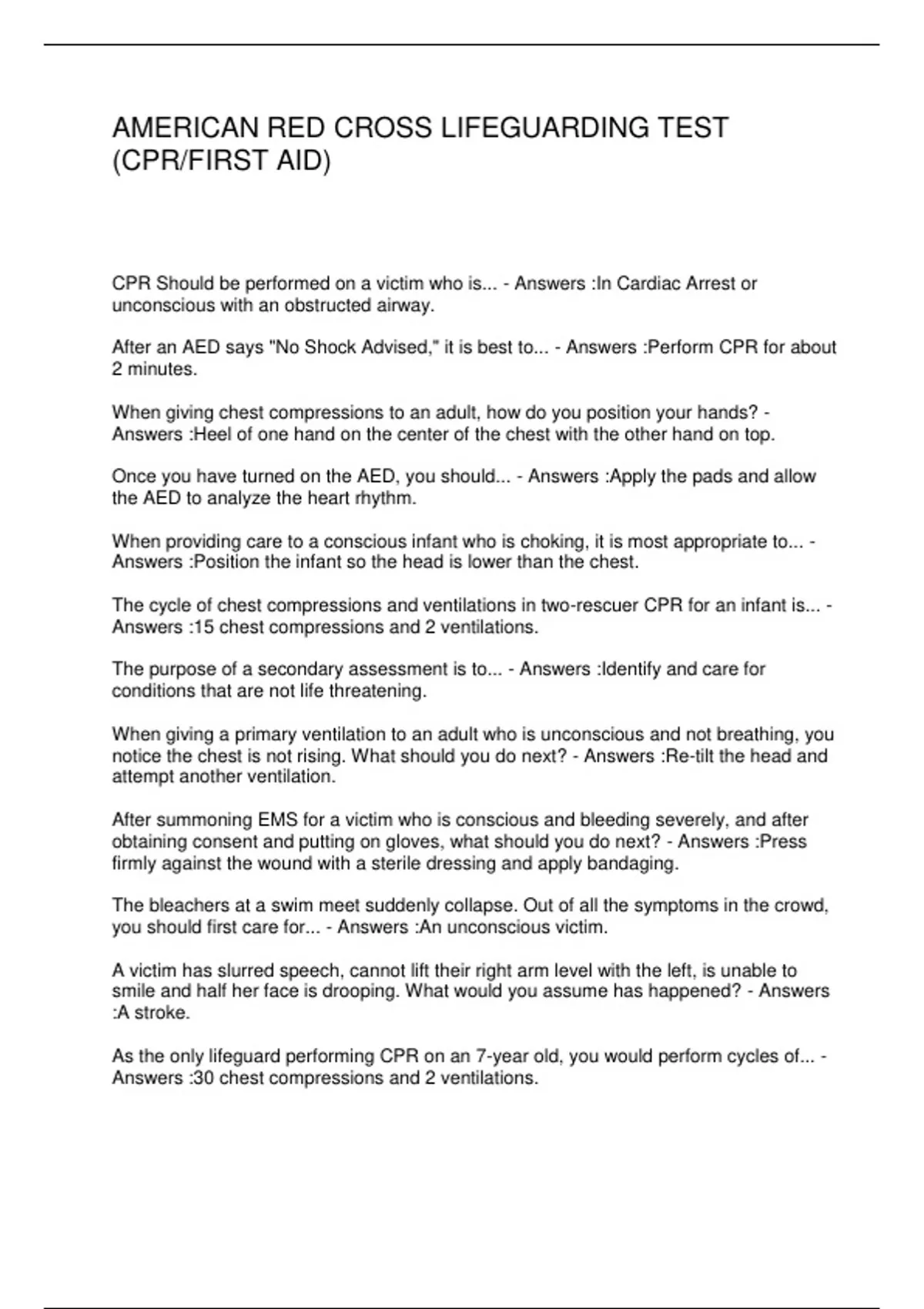AMERICAN RED CROSS LIFEGUARDING TEST