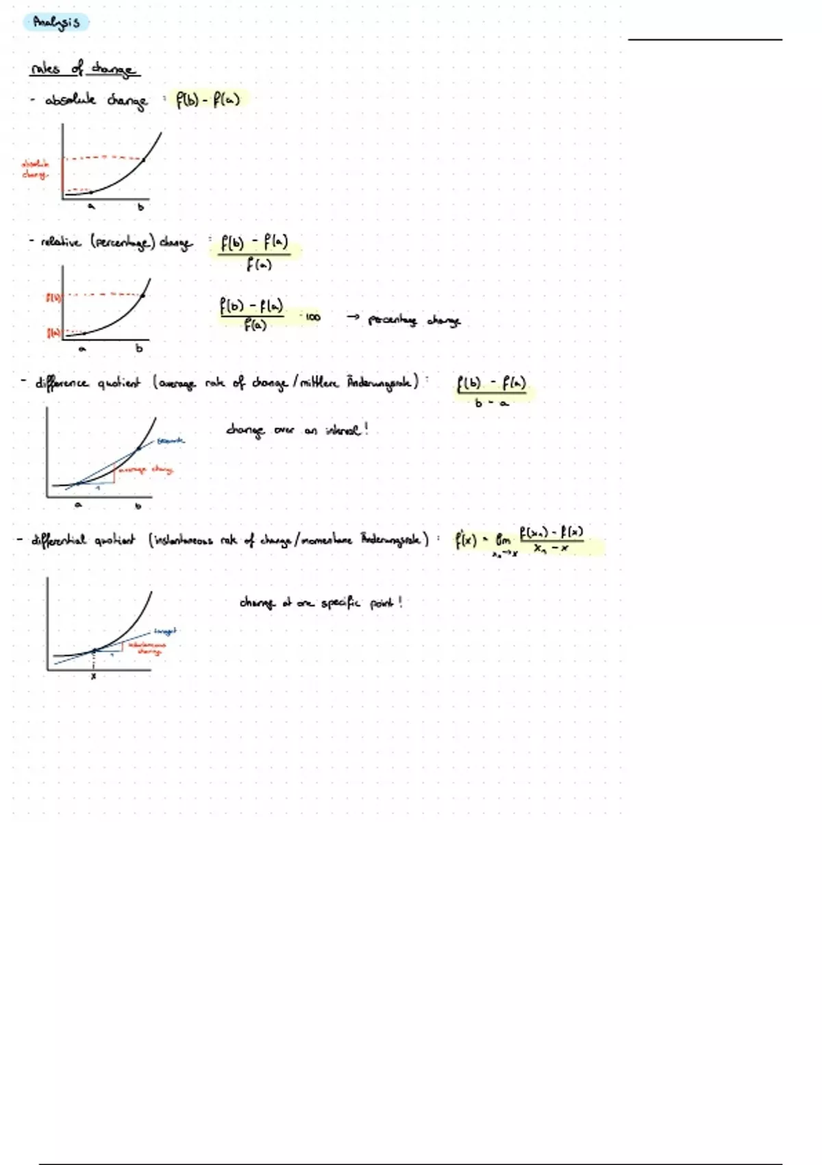 differential quotient (instantaneous rak of change/momentane Änderungsrate) :