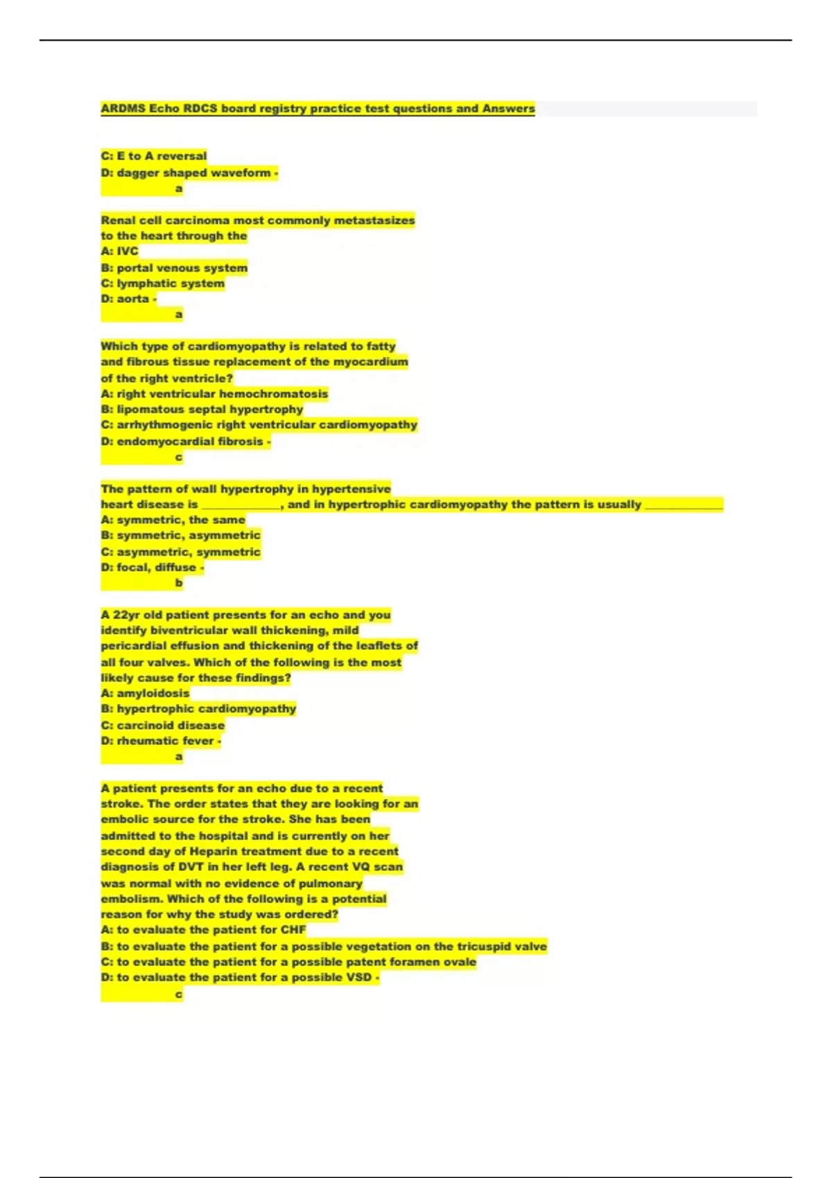 ARDMS Echo RDCS board registry practice test questions and Answers.pdf