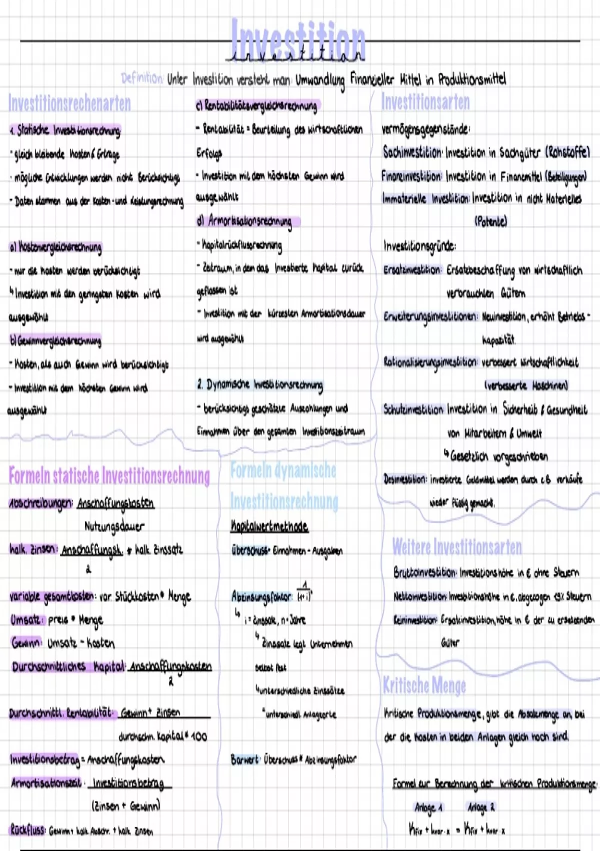 Formeln statische Investitionsrechnung Formeln dynamische Desinvestition : Geldmittel werdendurch n . B. verkaufe