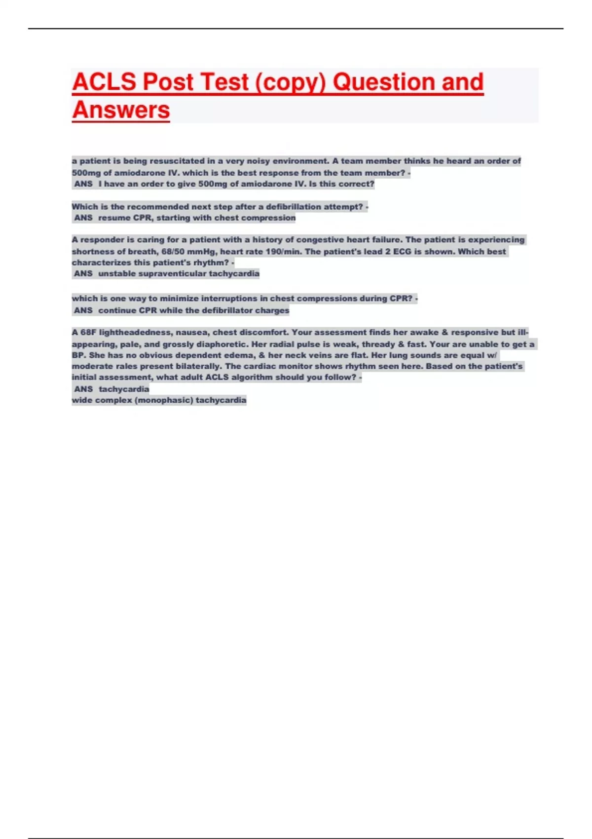 ACLS Post Test (copy) Question and Answers.pdf 1. Document information