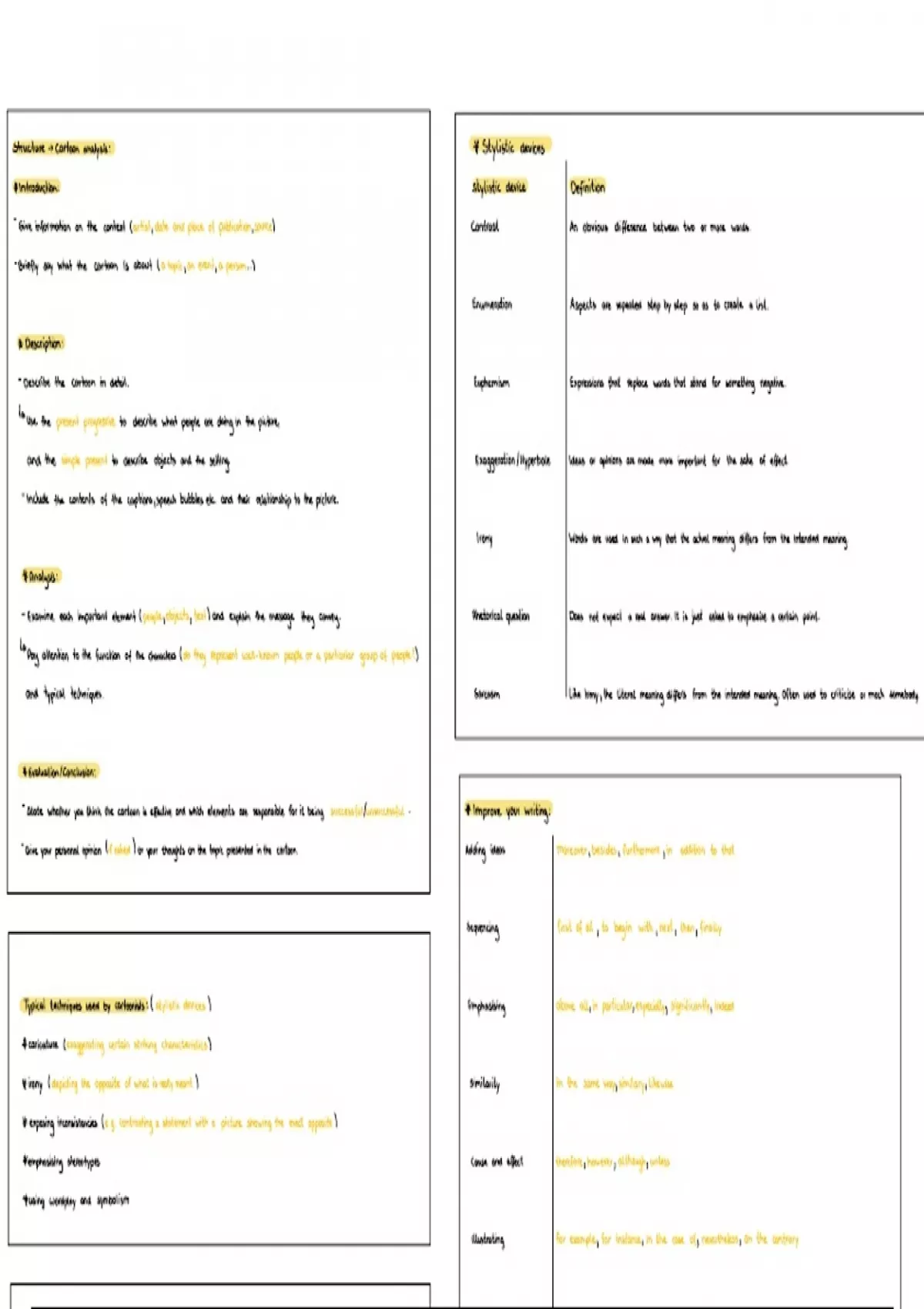 Typical techniques used by cartoonists : (stylistic devices ( Emphasising above all , in particular , especially , significantly ,