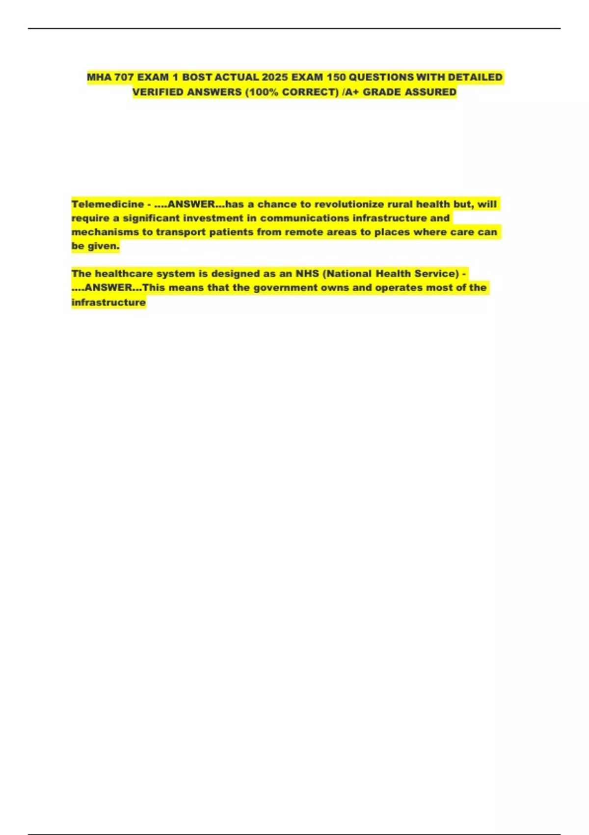Exam of 19 pages for the course Healthcare nursing at Healthcare nursing (MHA 707 EXAM 1 .pdf)