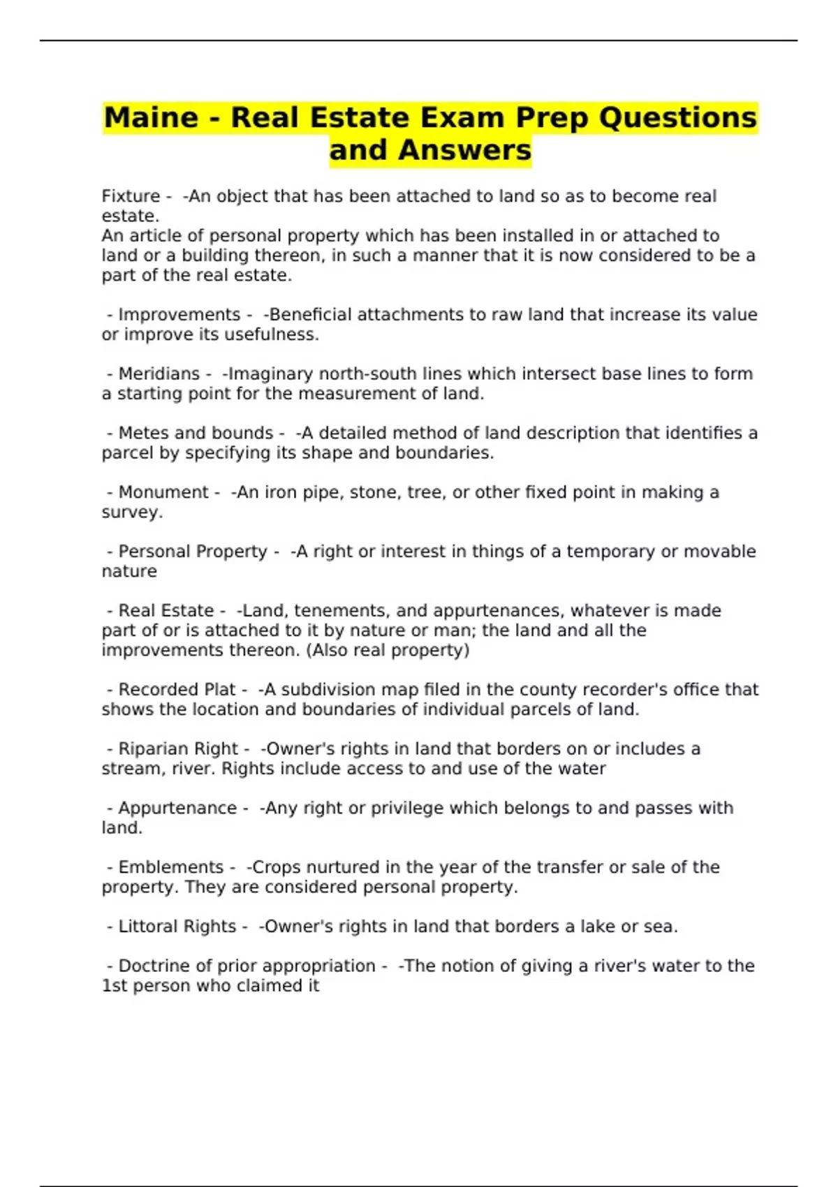 Maine - Real Estate Exam Prep Questions