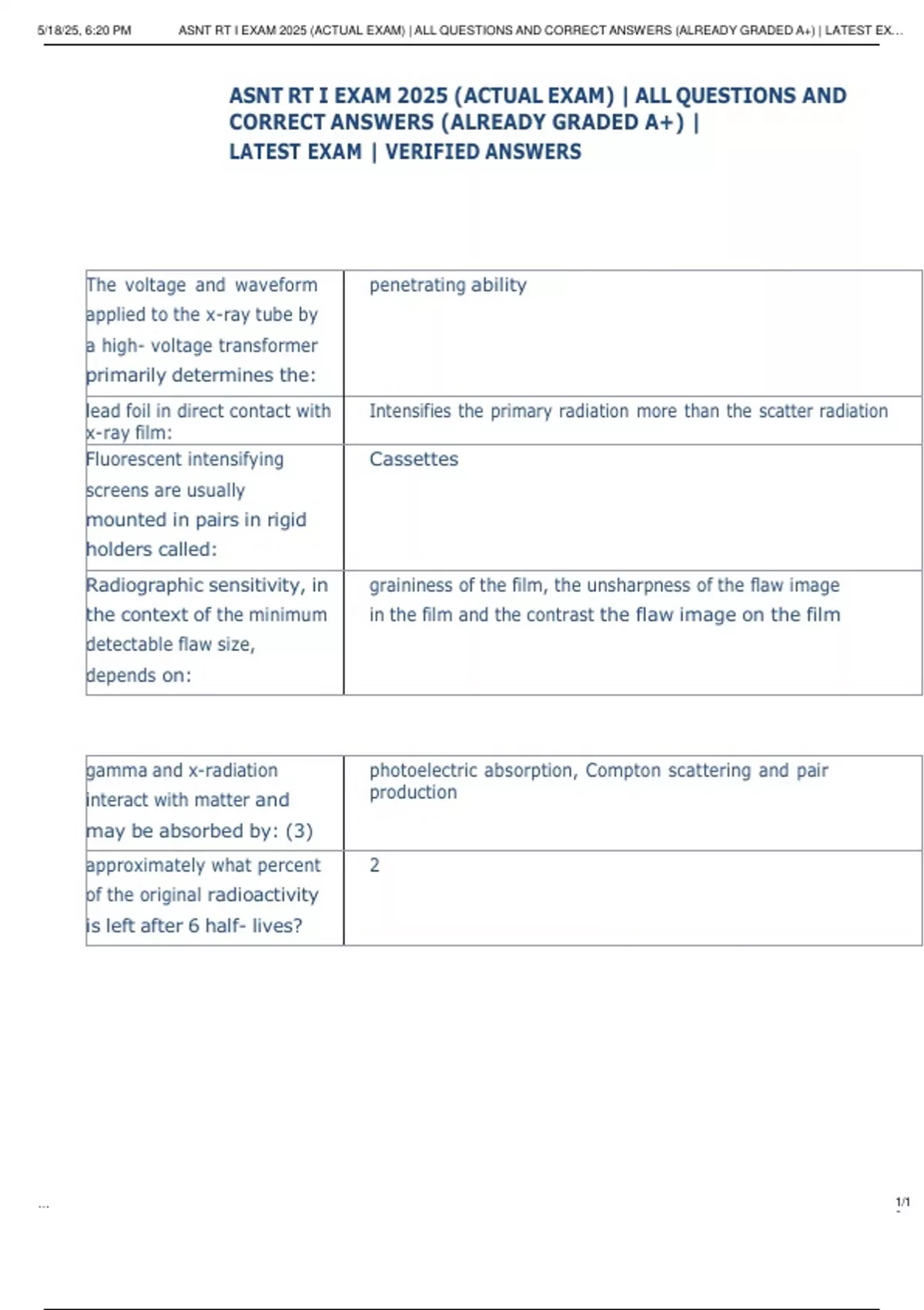 , 5/18/25, 6:20 PM ASNT RT I EXAM 2025 (ACTUAL EXAM) | ALL QUESTIONS AND CORRECT ANSWERS (ALREADY GRADED A+) | LATEST EX…