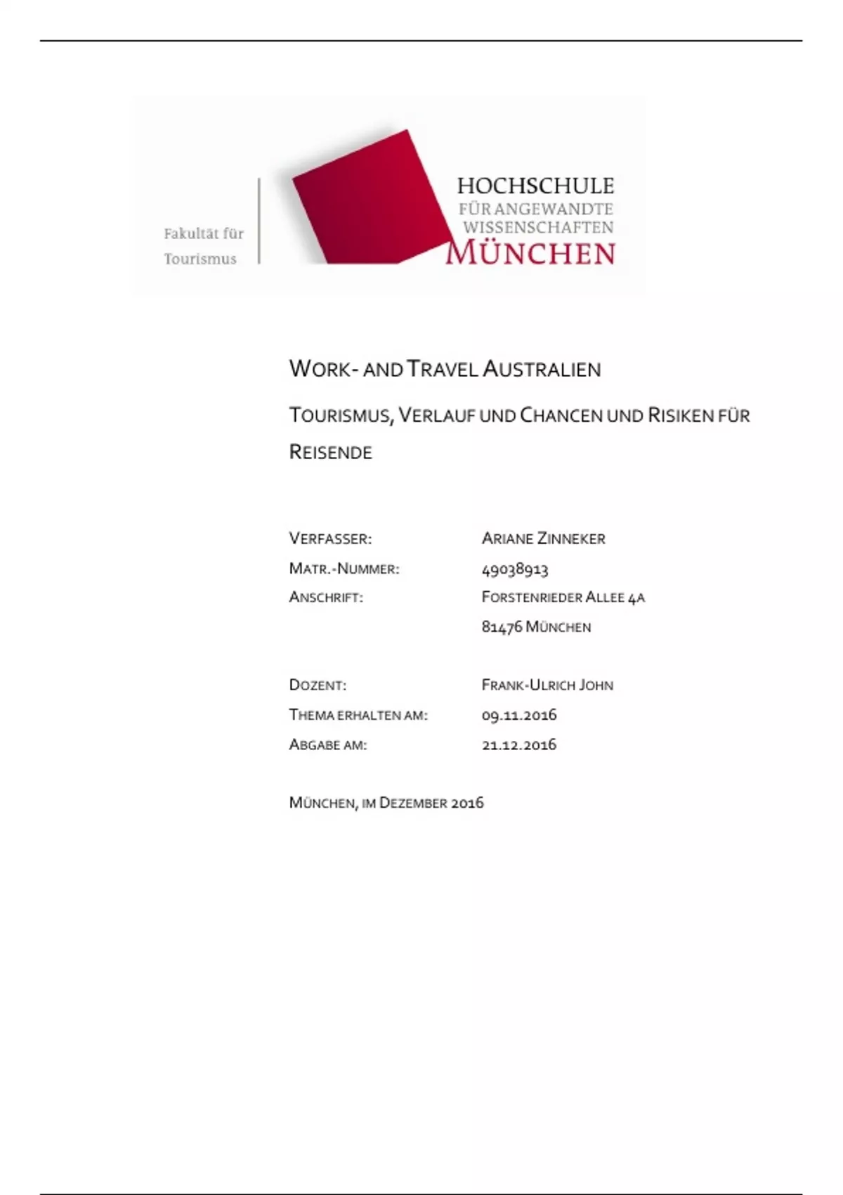 arianezinneker Hochschule München