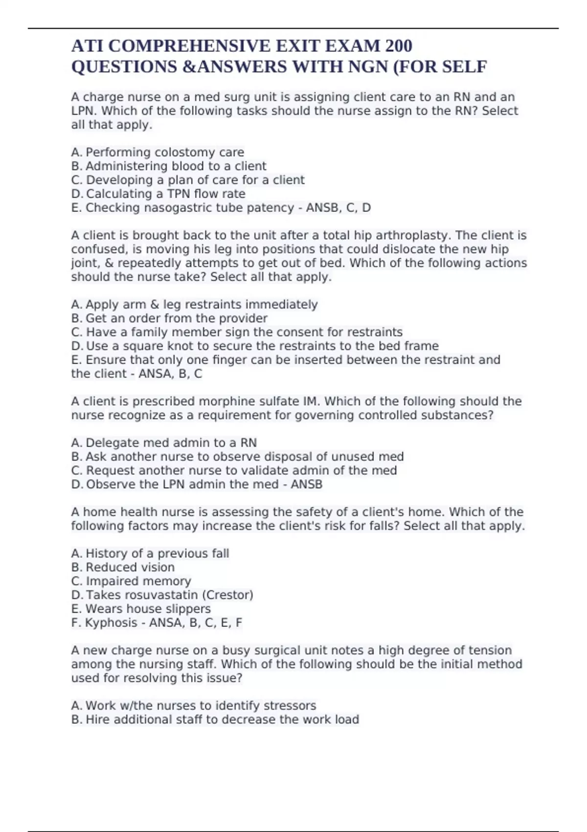 ATI COMPREHENSIVE EXIT EXAM 200 QUESTIONS &ANSWERS WITH NGN (FOR SELF