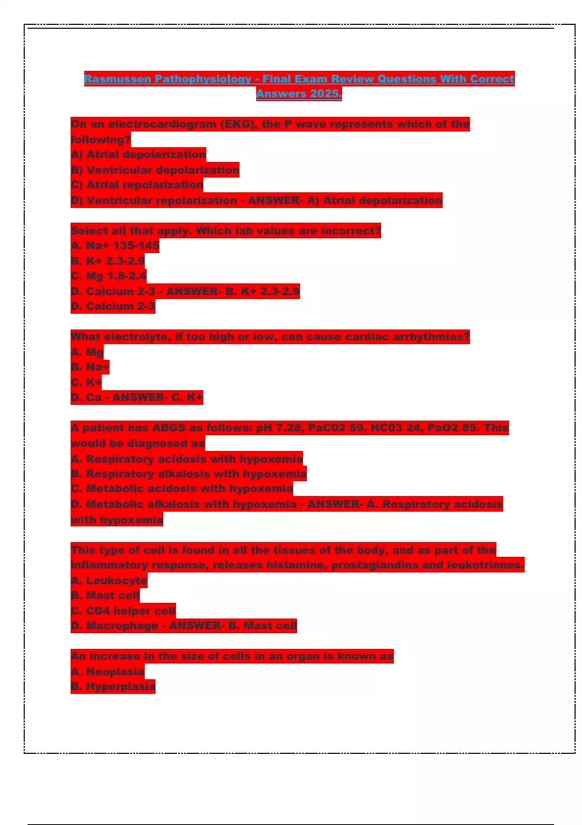 D. Apoptosis - ANSWER- B. Hyperplasia
