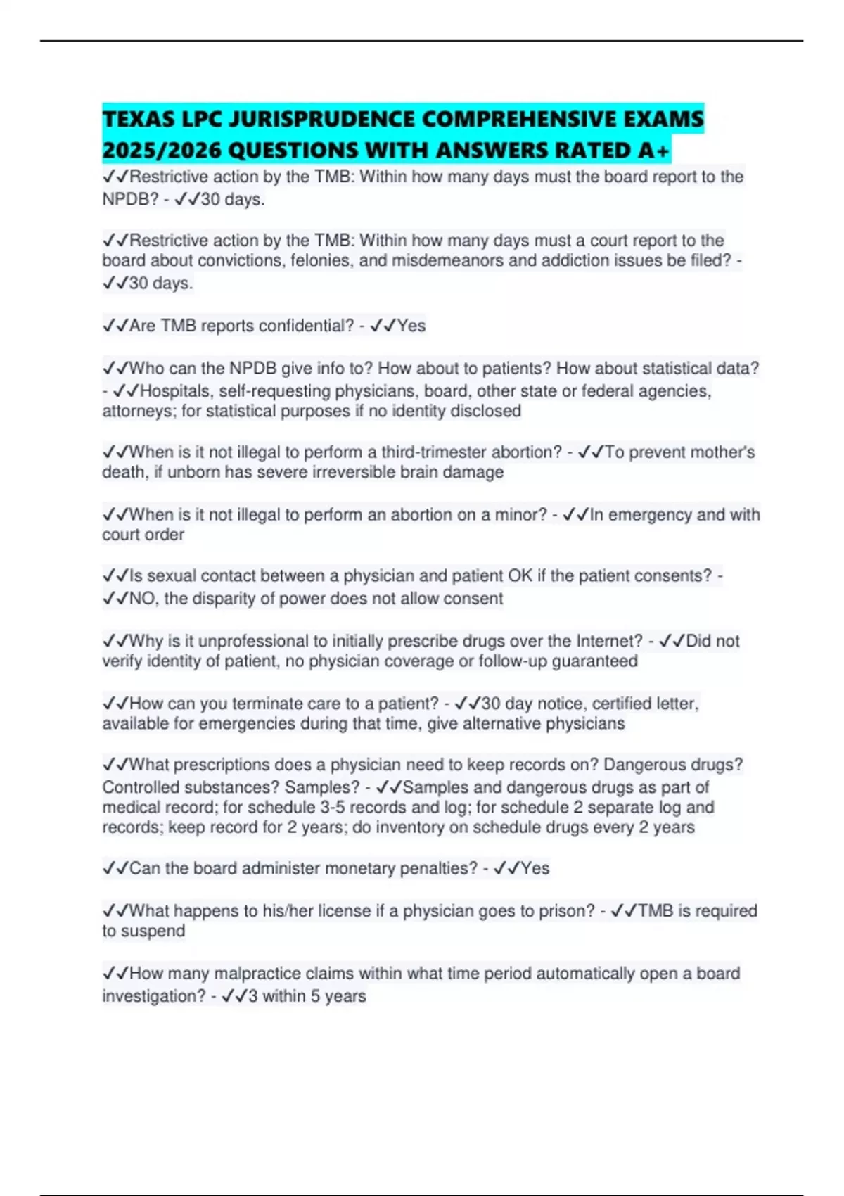 TEXAS LPC JURISPRUDENCE COMPREHENSIVE EXAMS 2025/2026 QUESTIONS WITH ANSWERS RATED A+