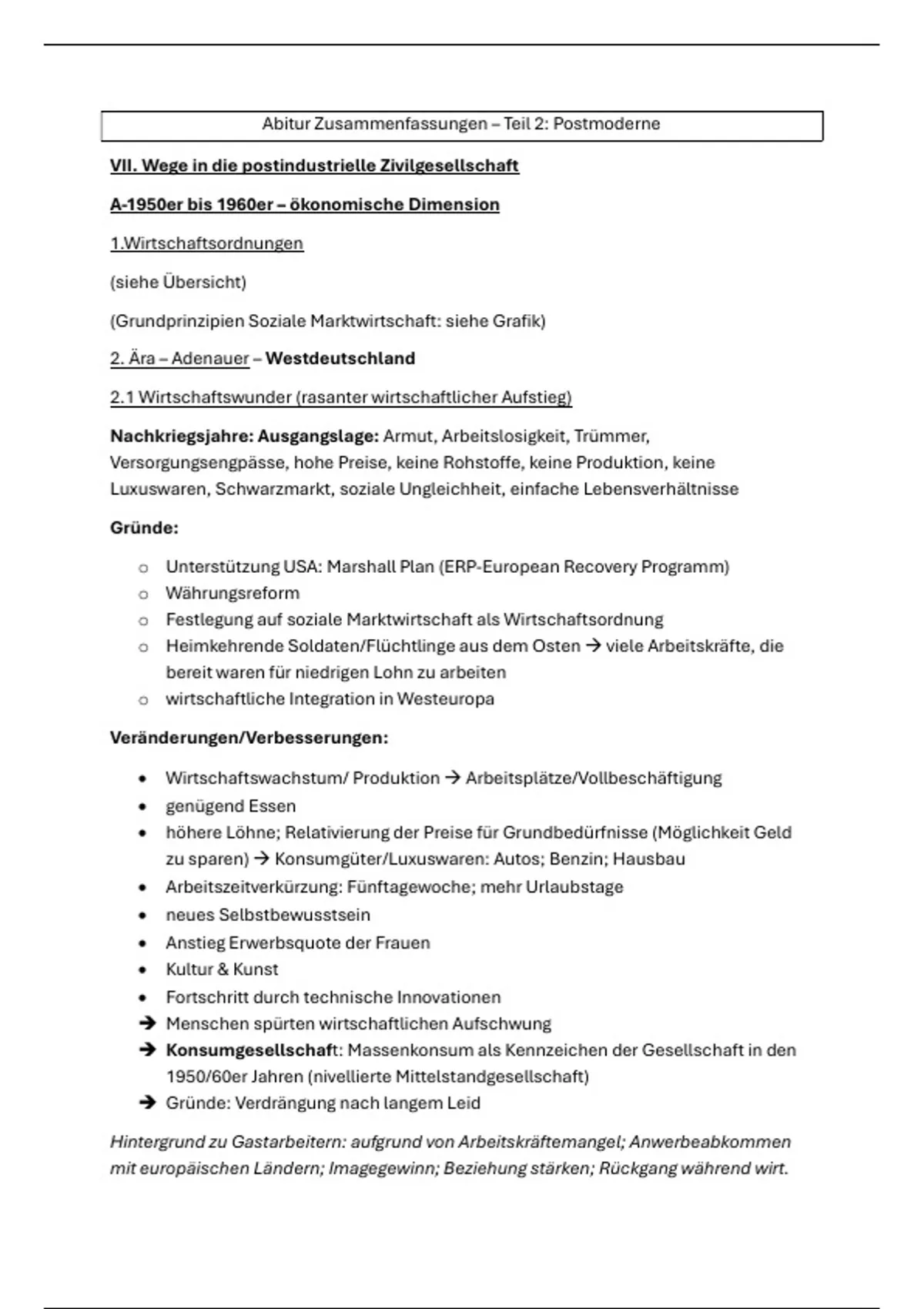 Postmoderne Abitur Zusammenfassungen. Die wirtschaftliche, gesellschaftliche und politische Situation in Ost und West in Deutschland nach dem Zweiten Weltkrieg bis zur Wiedervereinigung