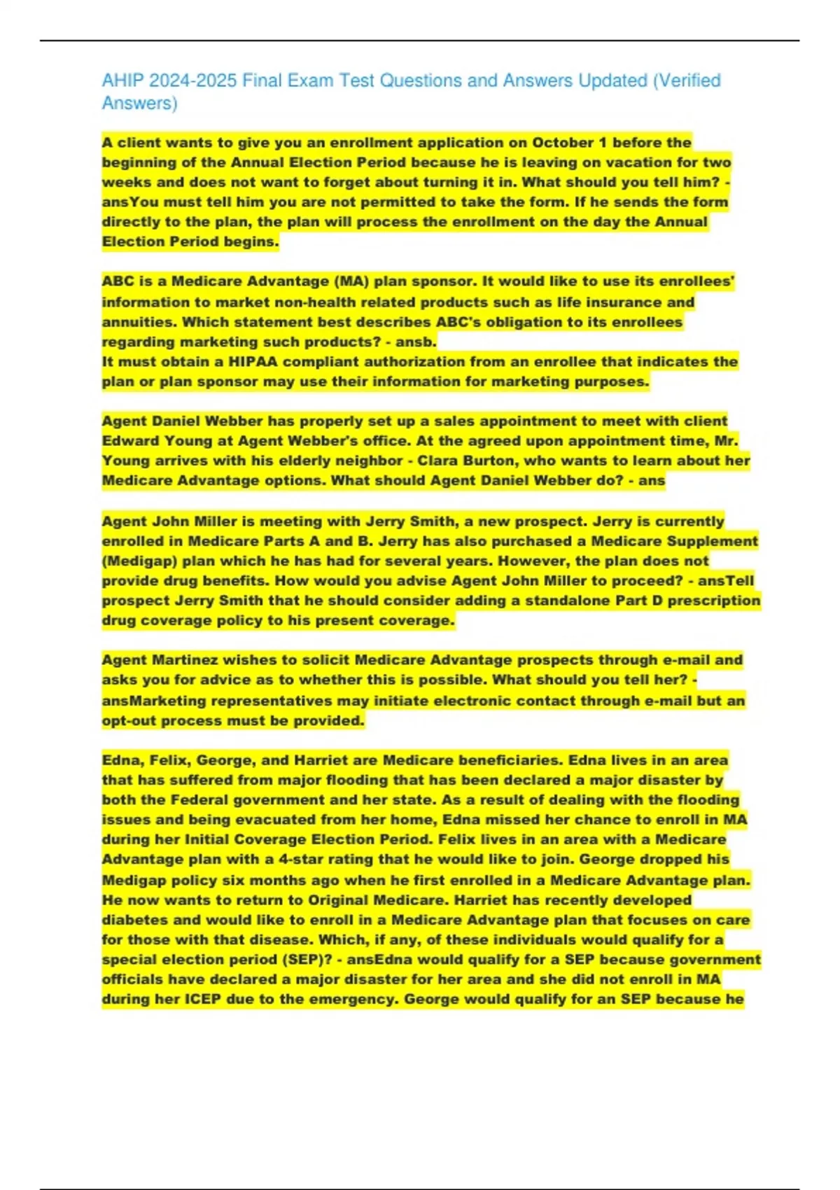 AHIP 2024 Final Exam Test Questions and Answers Updated (Verified Answers).pdf