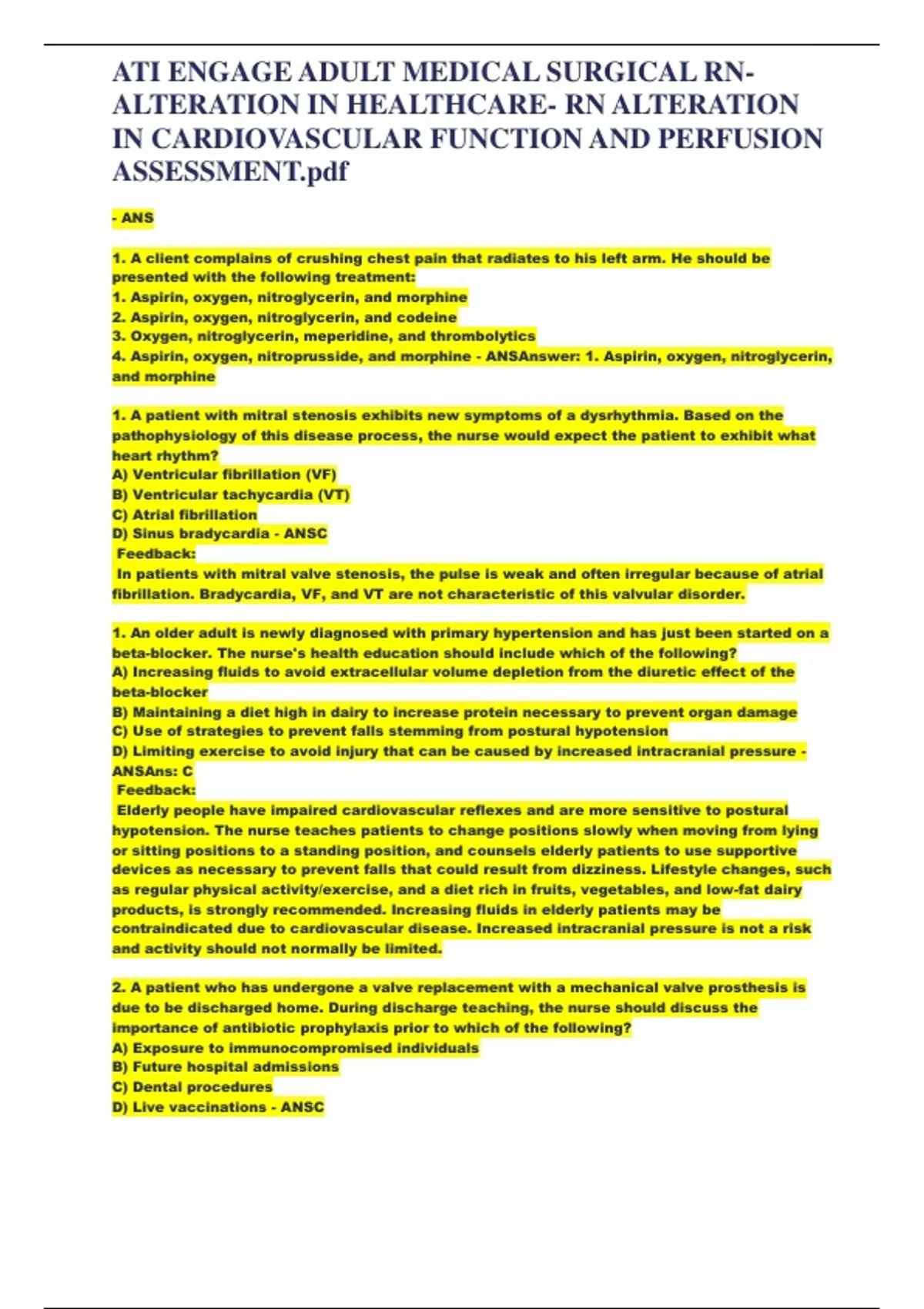 4. Aspirin, oxygen, nitroprusside, and morphine - ANSAnswer: 1. Aspirin, oxygen, nitroglycerin,