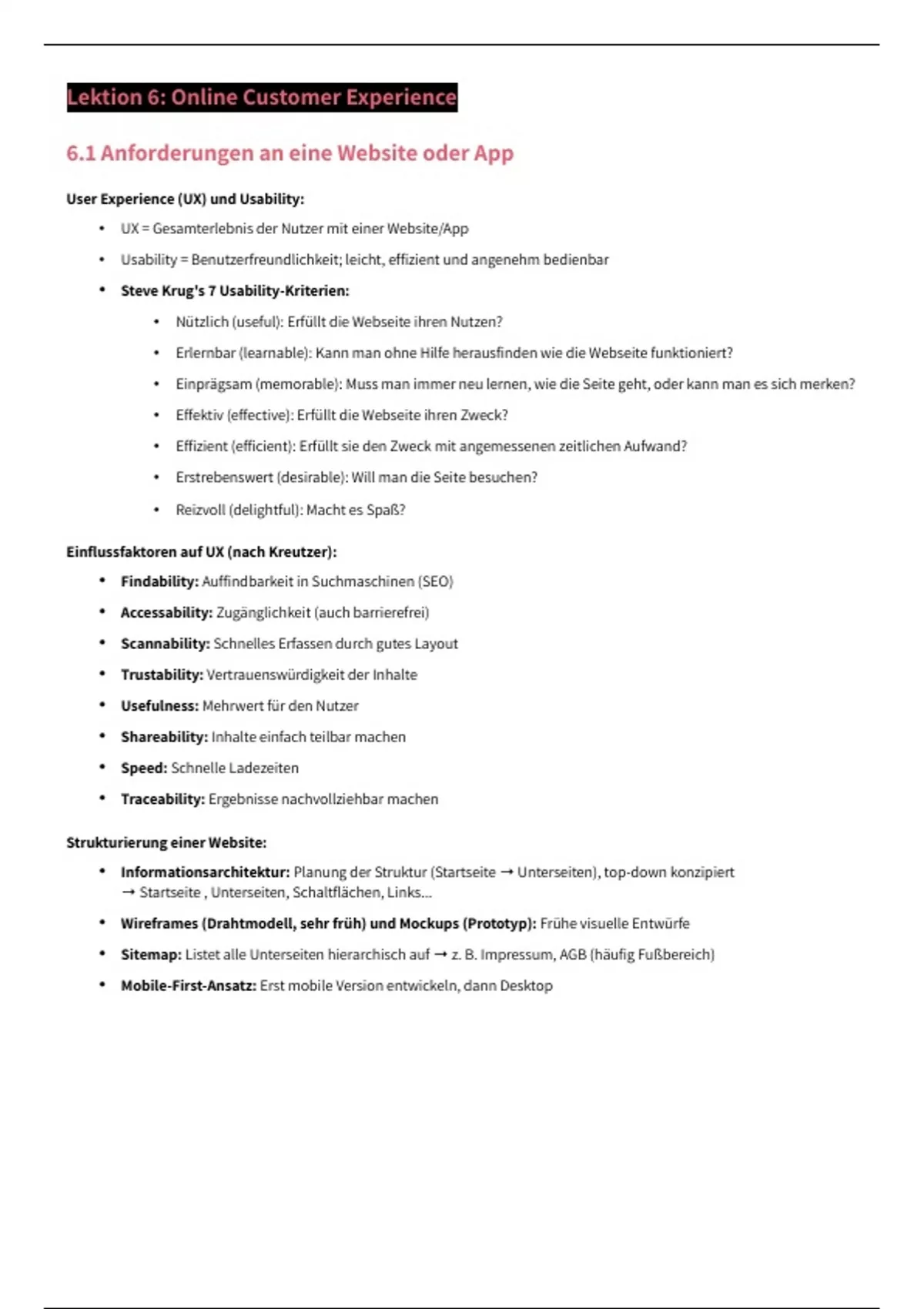 • UX = Gesamterlebnis der Nutzer mit einer Website/App