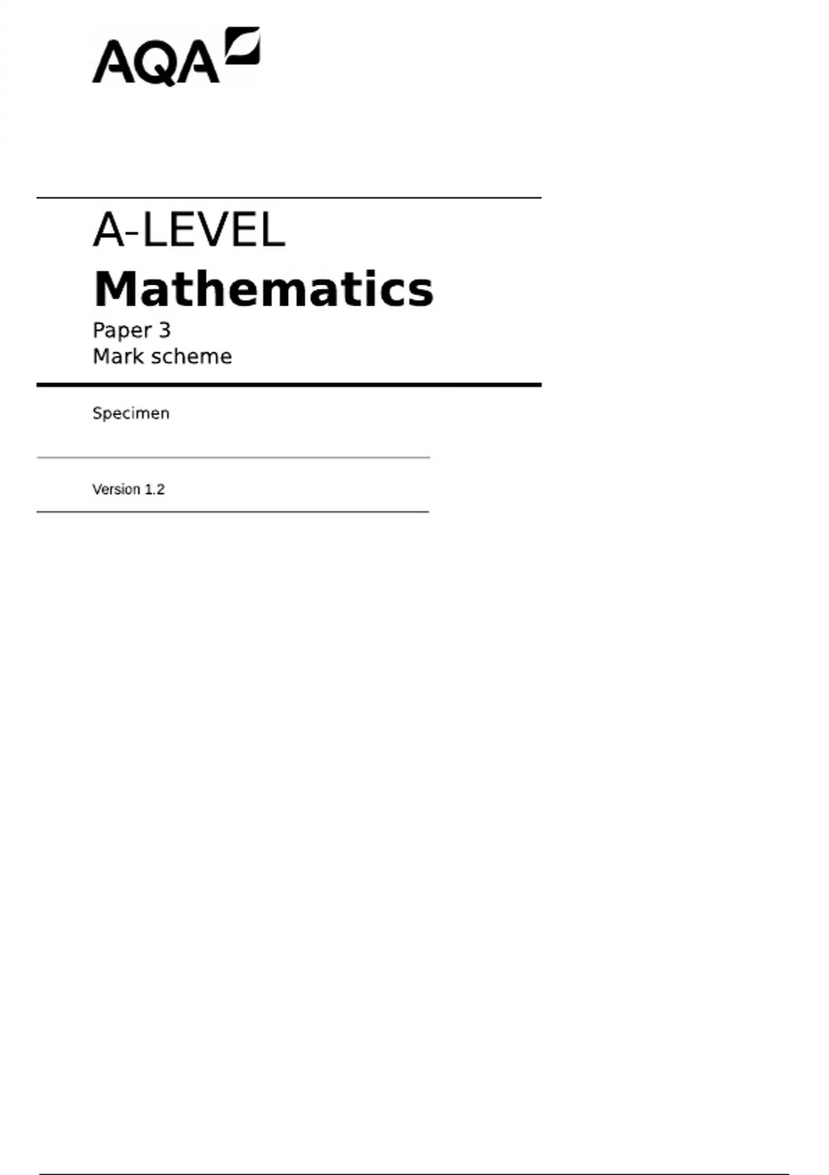 AQA Mark Scheme – A-Level Mathematics – Paper 3 – SpecimenAQA Mark Scheme – A-Level Mathematics – Paper 3 – SpecimenAQA Mark Scheme – A-Level Mathematics – Paper 3 – SpecimenAQA Mark Scheme – A-Level Mathematics – Paper 3 – SpecimenAQA Mark Scheme – A-Level Mathematics – Paper 3 – SpecimenAQA Mark Scheme – A-Level Mathematics – Paper 3 – Specimen